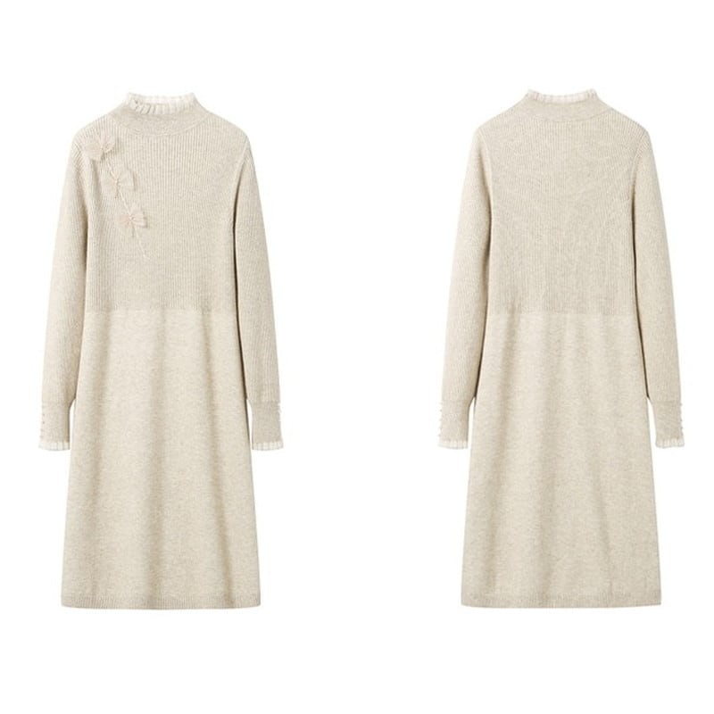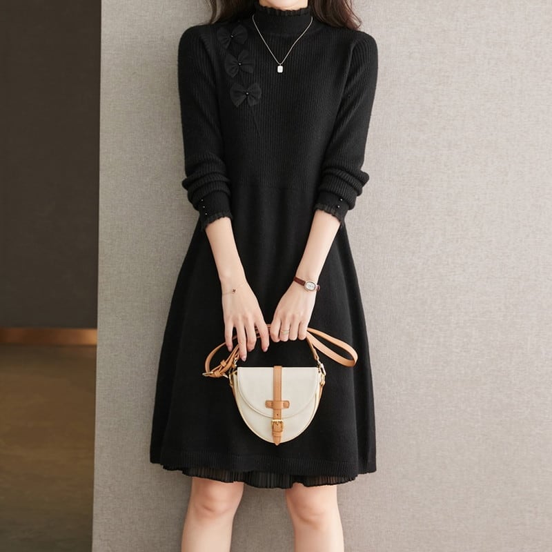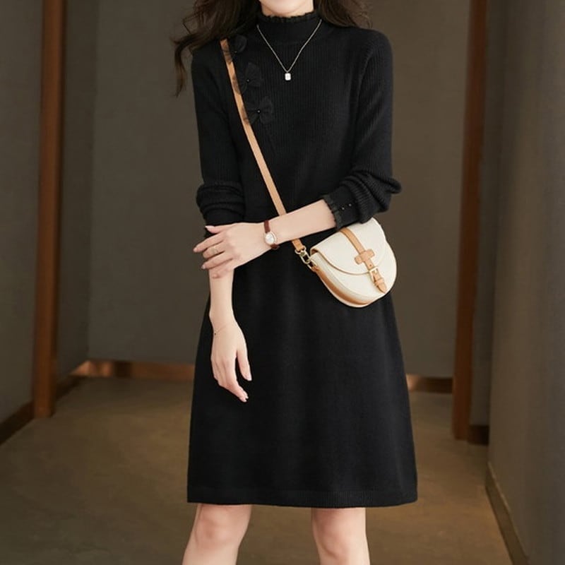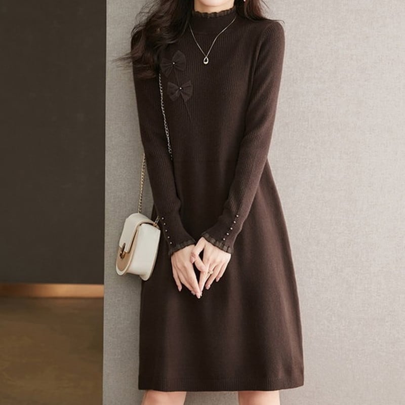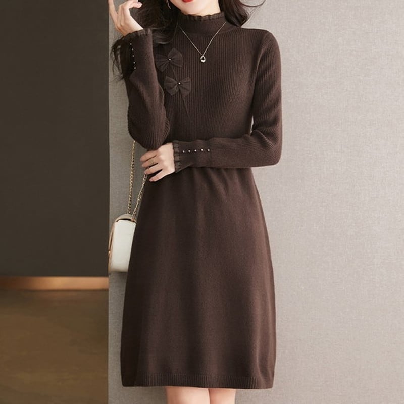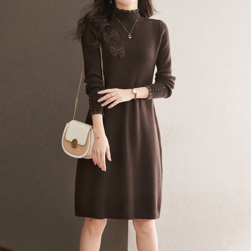 胸元のチュールリボンが可愛らしいニットワンピースです。