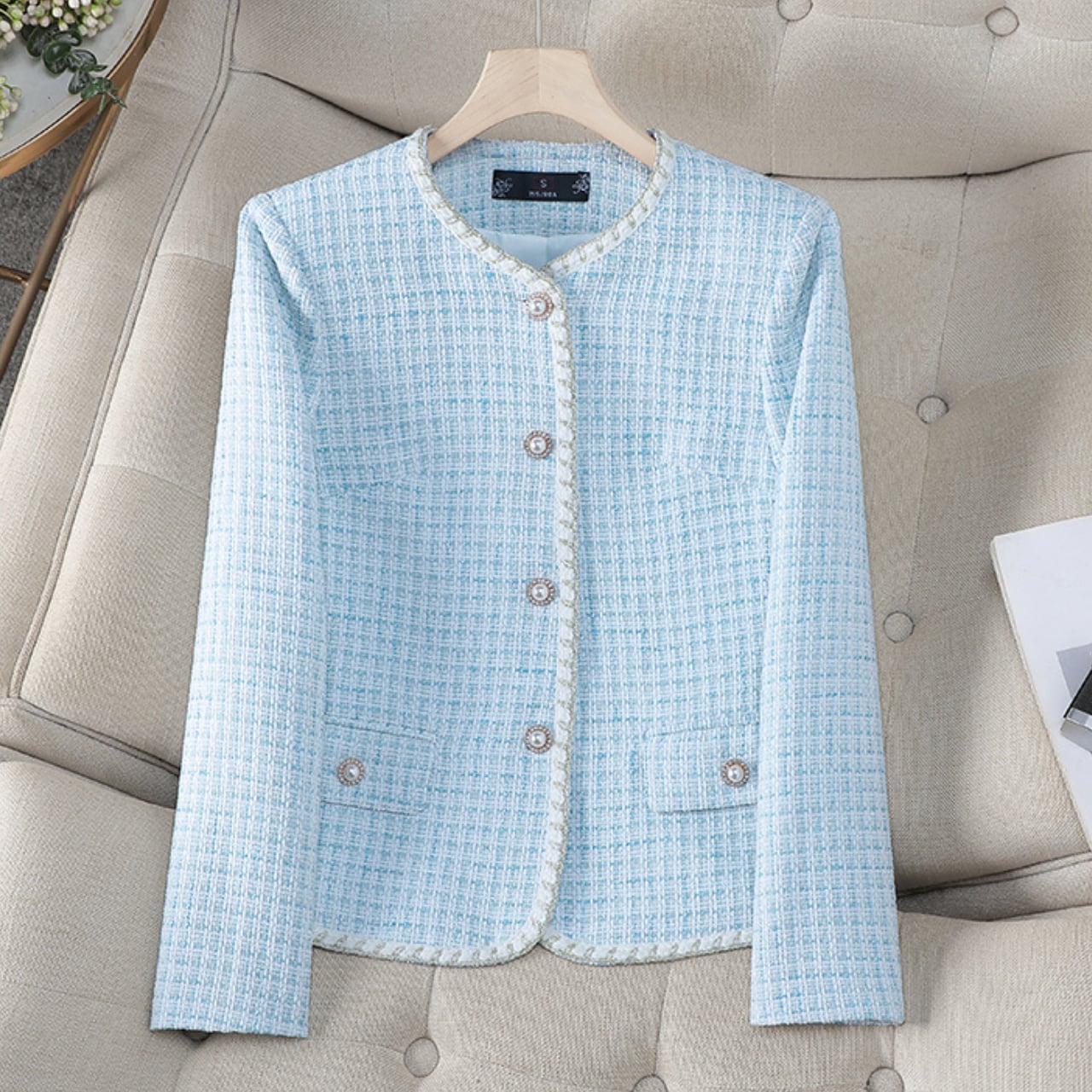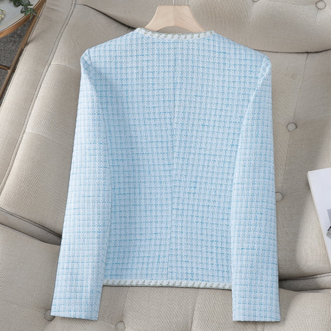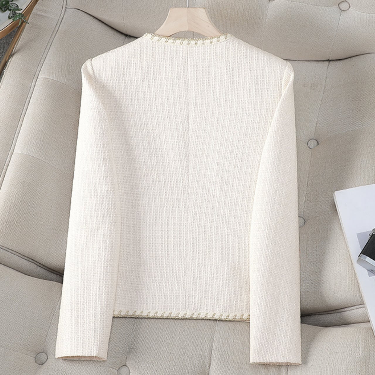 上品な印象を与えてくれるツイード風ジャケットです。