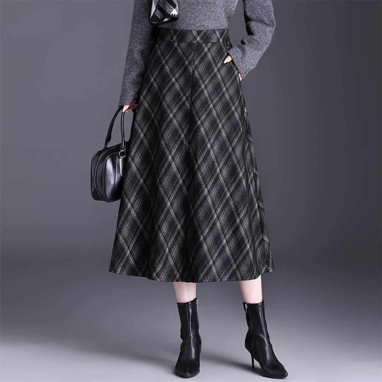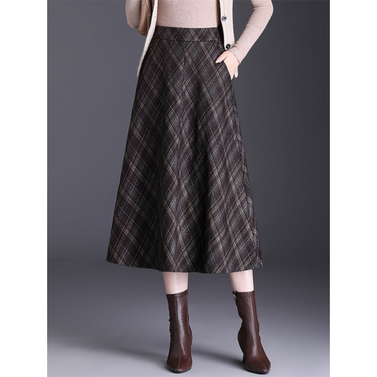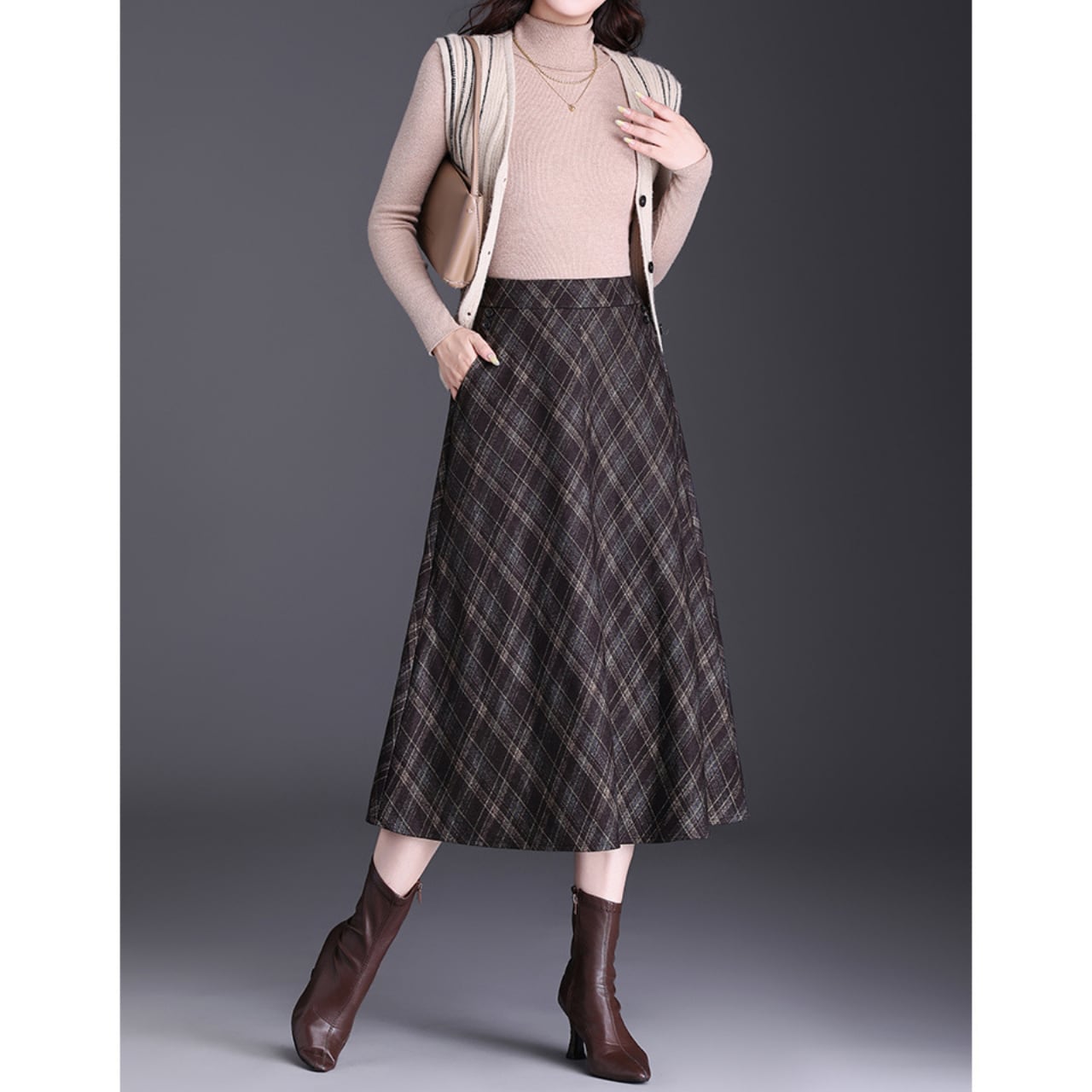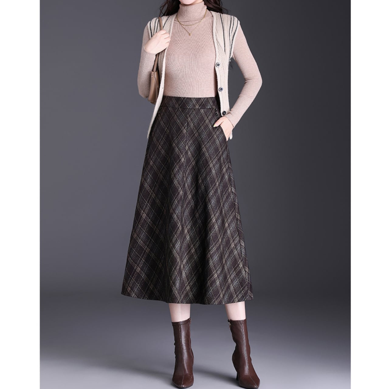上品なチェック柄が目を引く、大人の女性におすすめのスカートです。