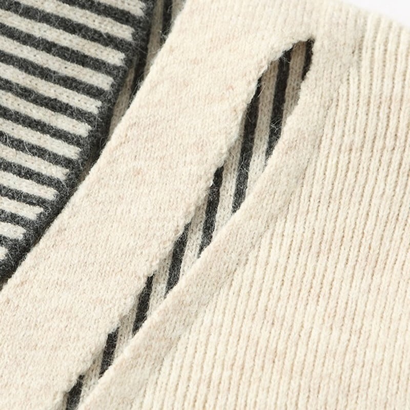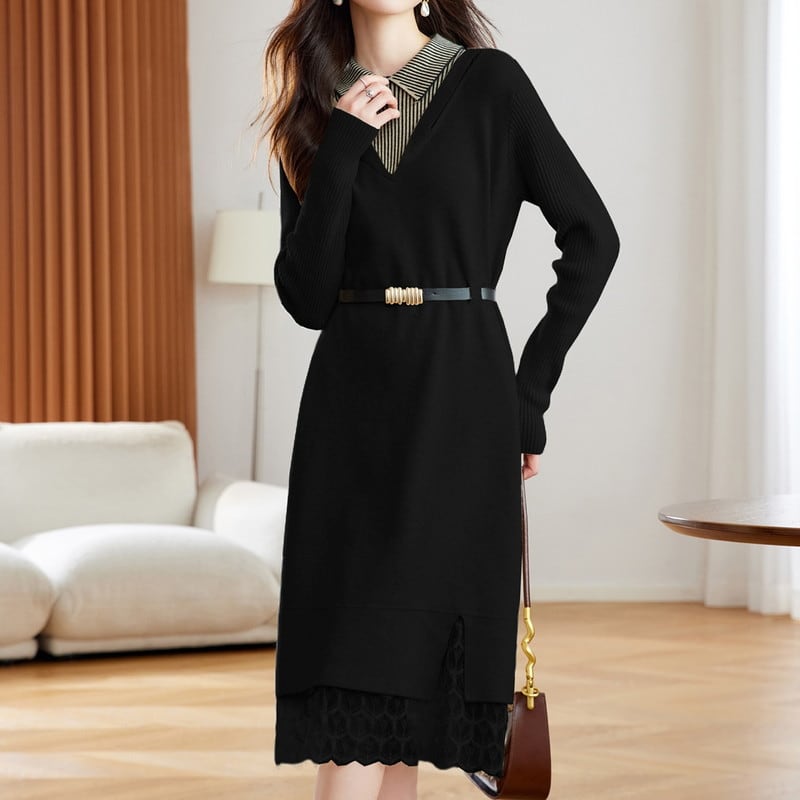 ストライプ襟のレイヤード風デザインが上品な印象のニットワンピースです。
