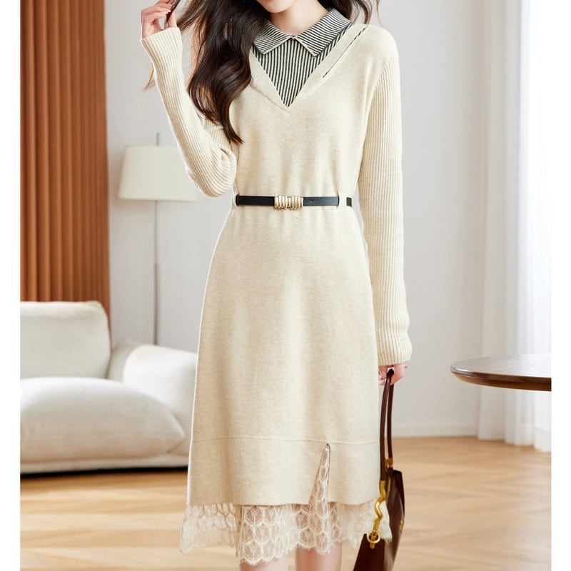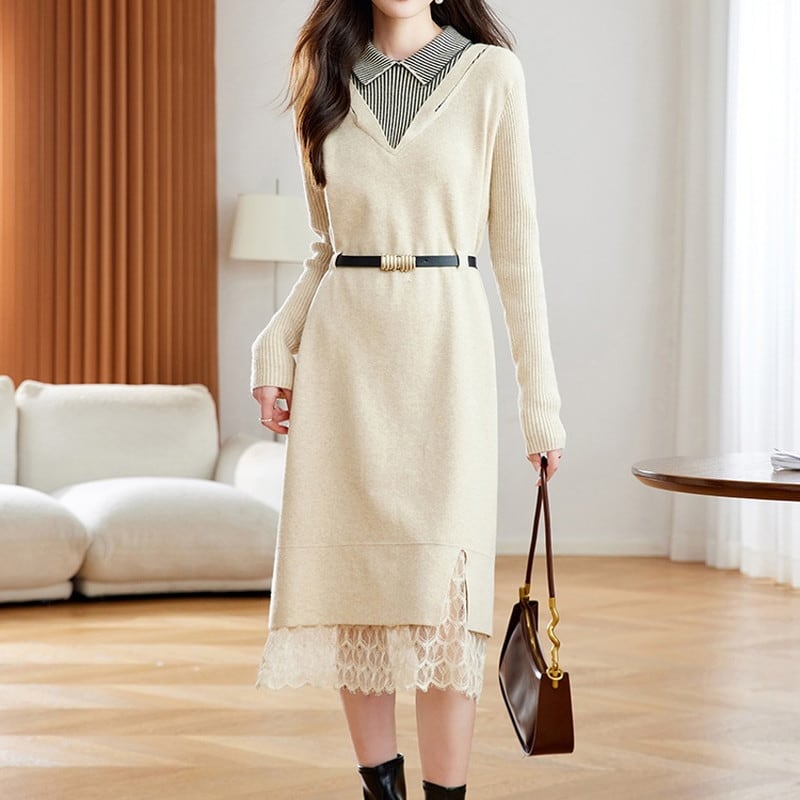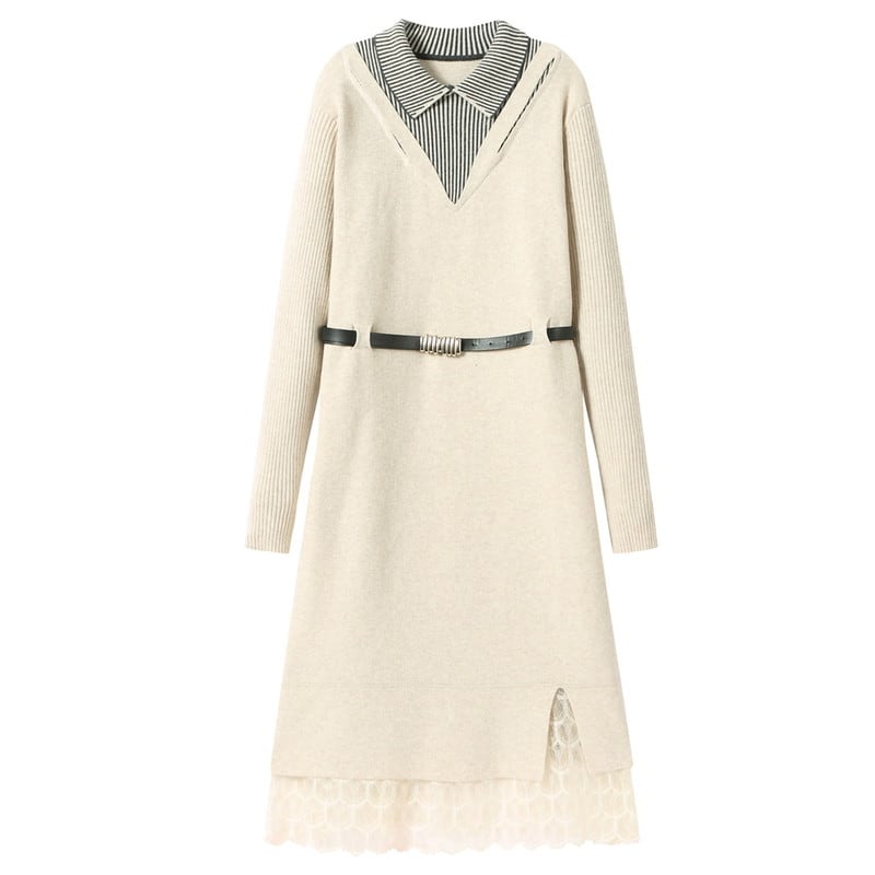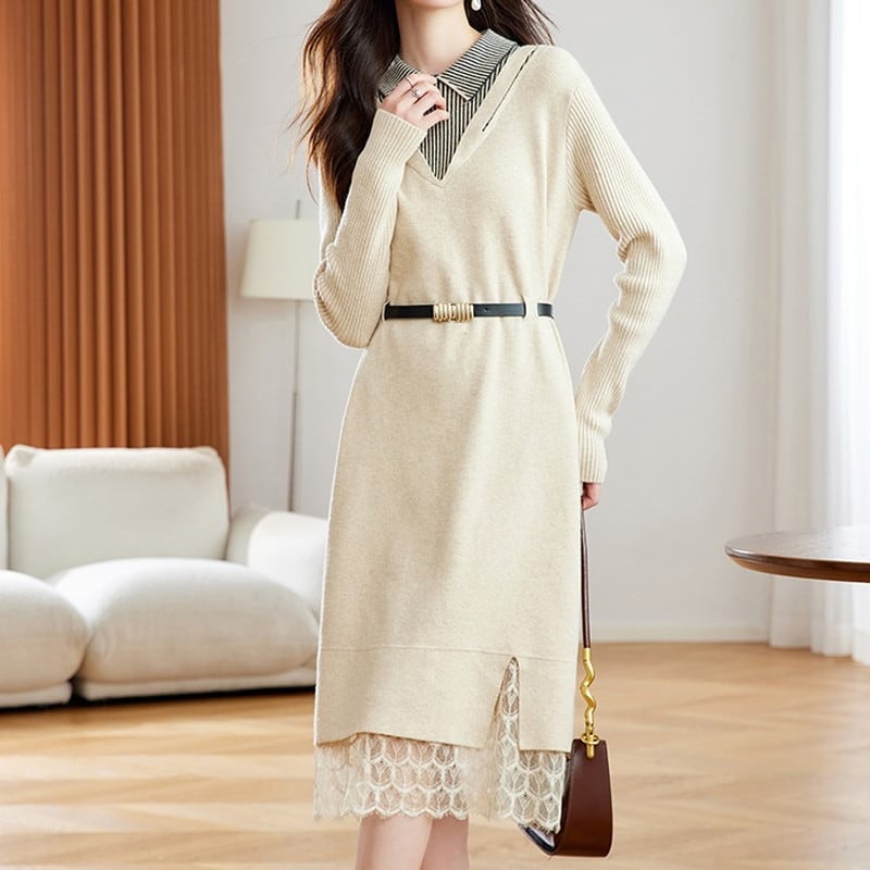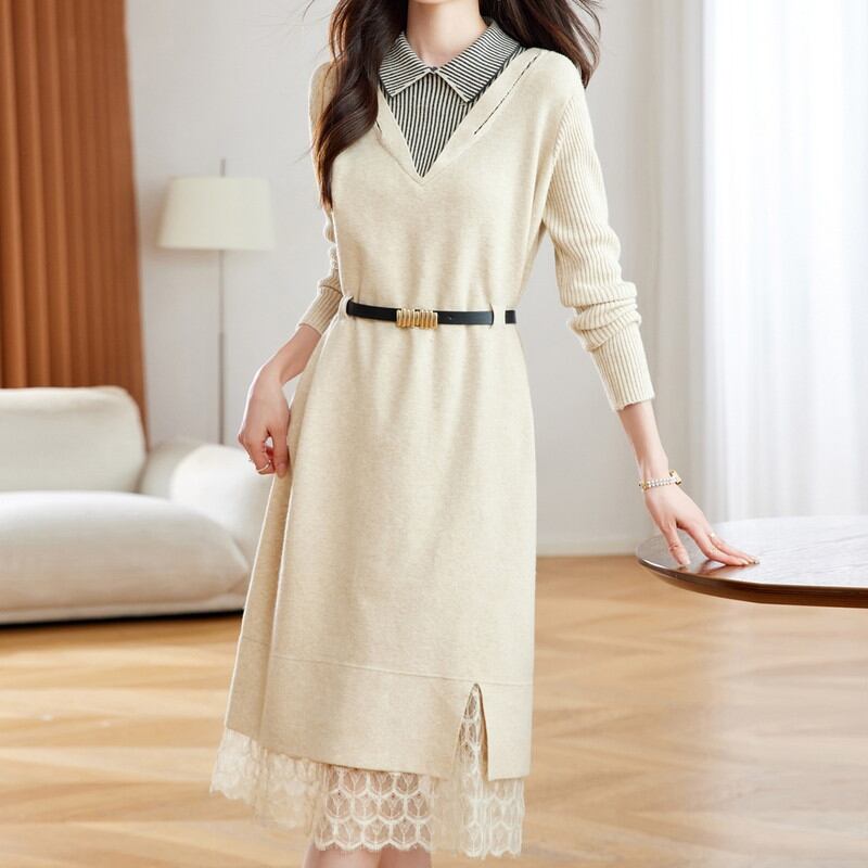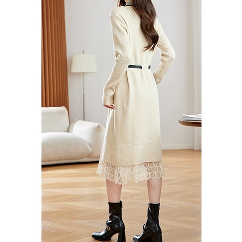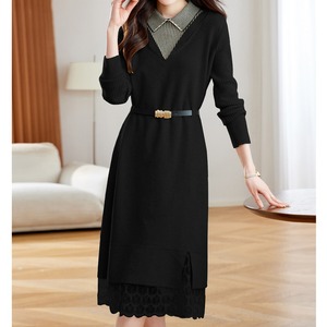 重ね着風レースヘムニットワンピース Me1667