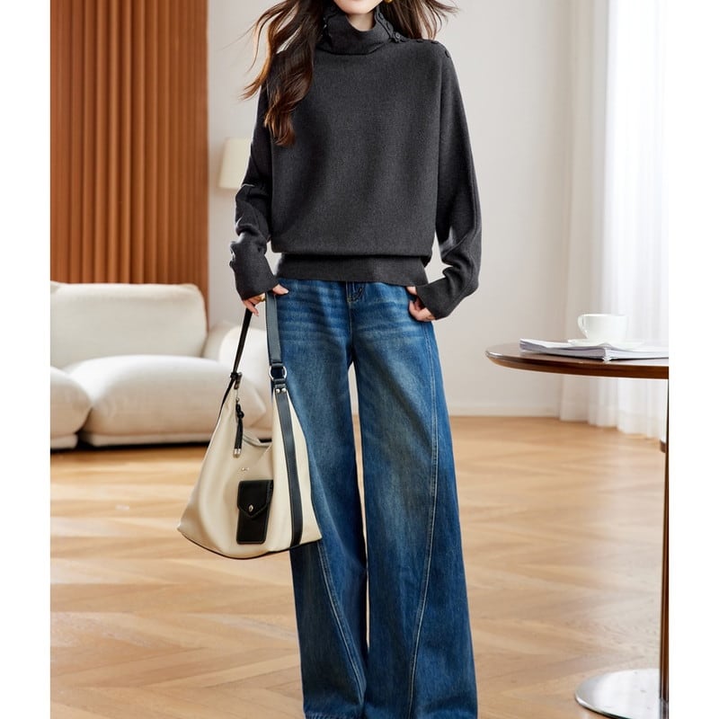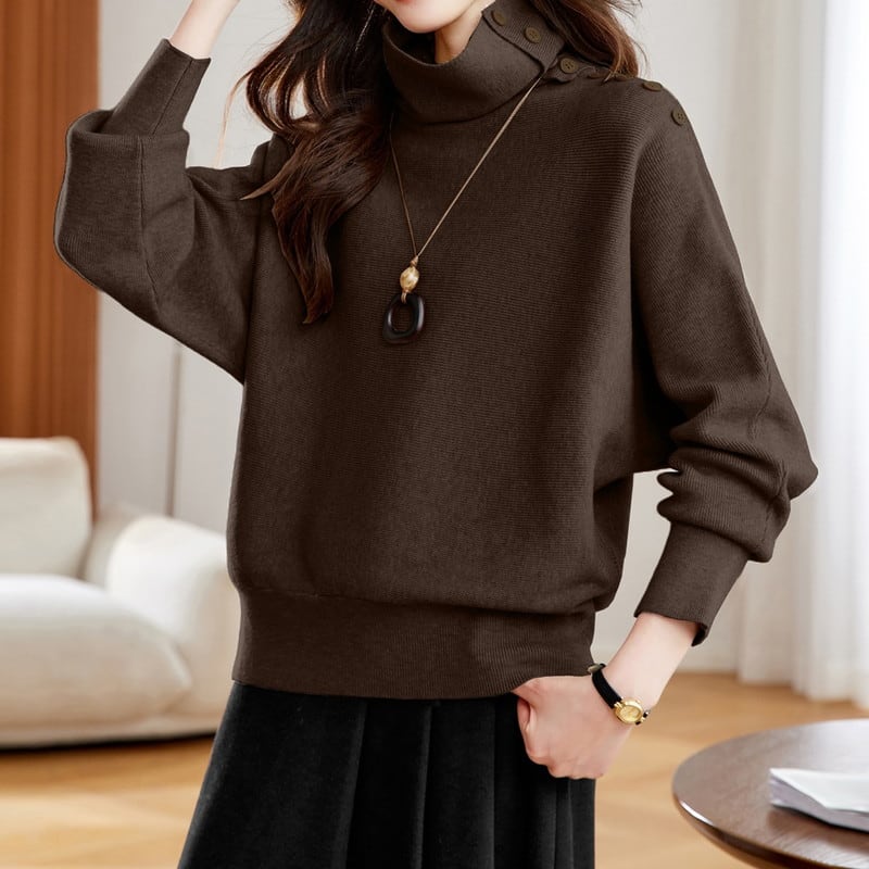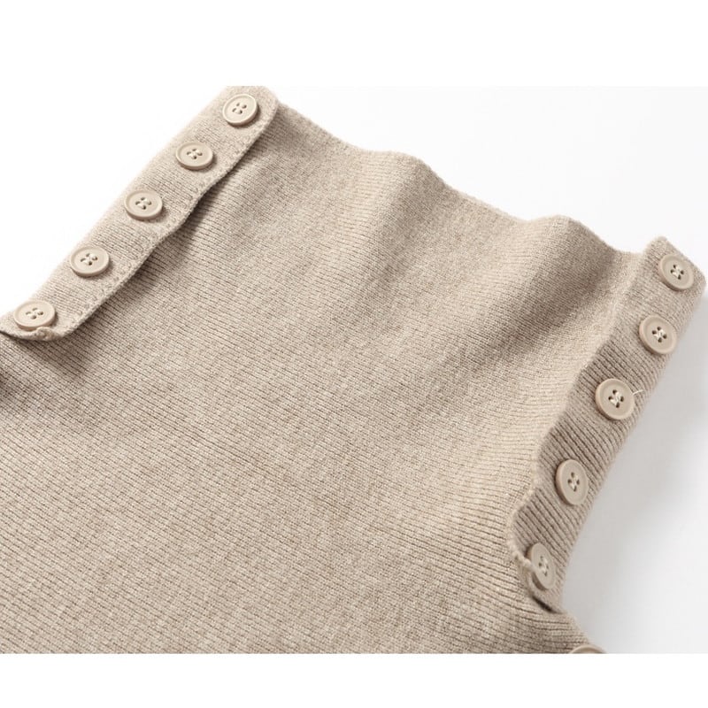 首元に並ぶボタンがさりげない表情を添える、ニットトップスです。