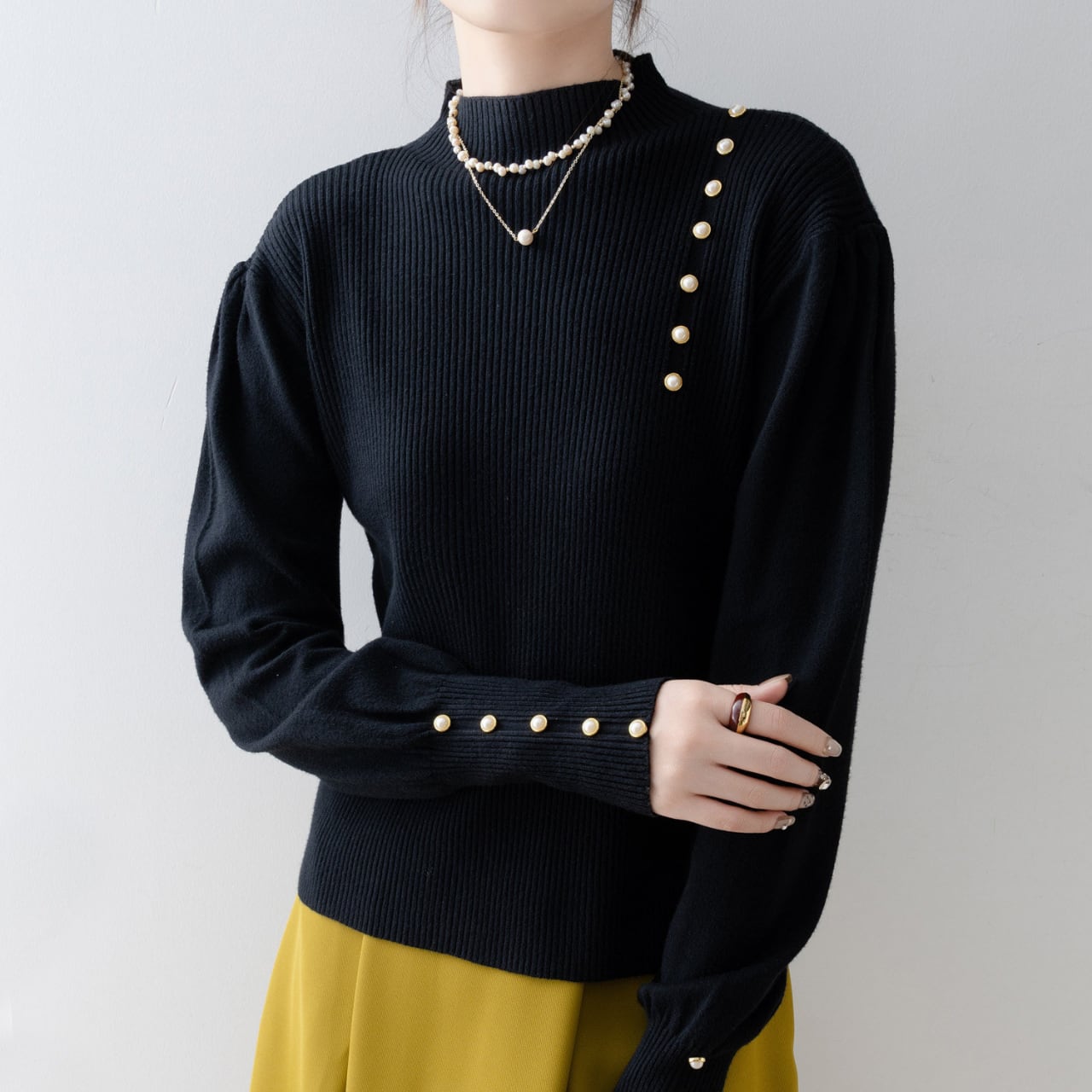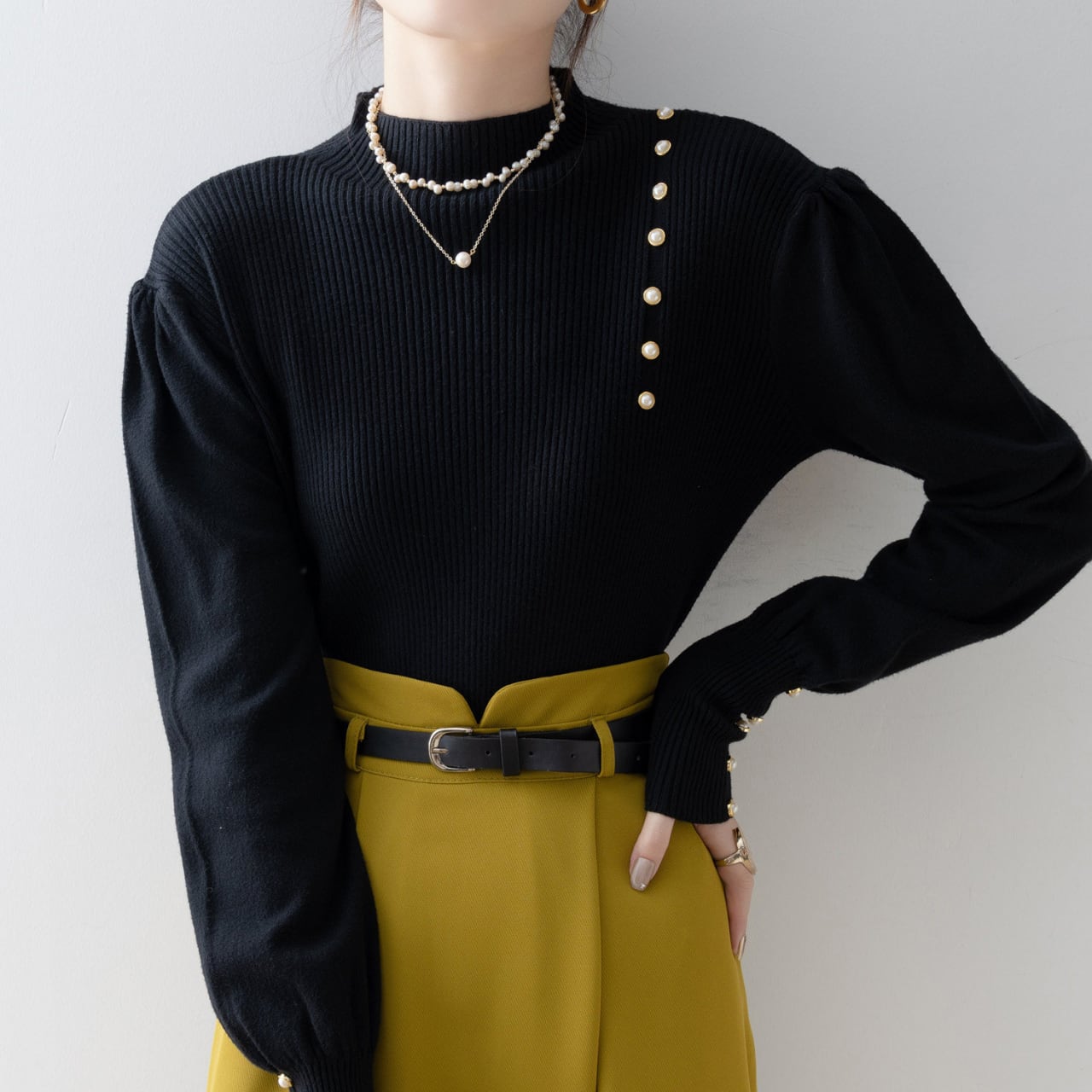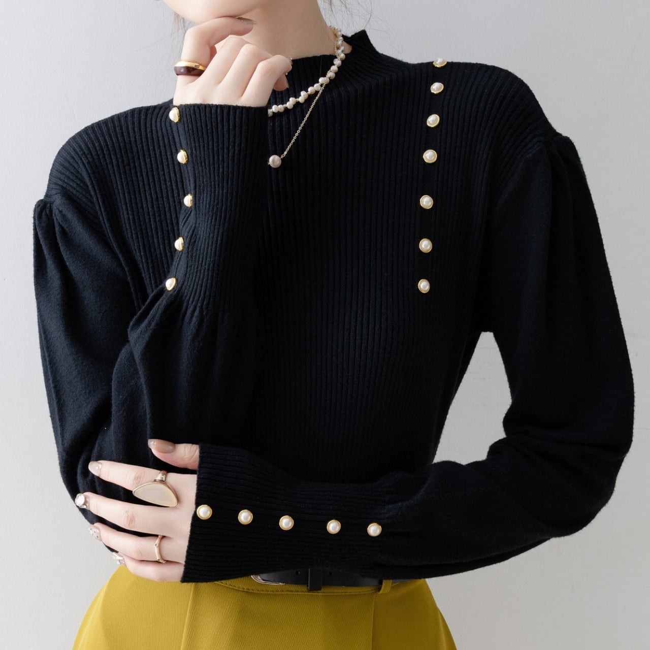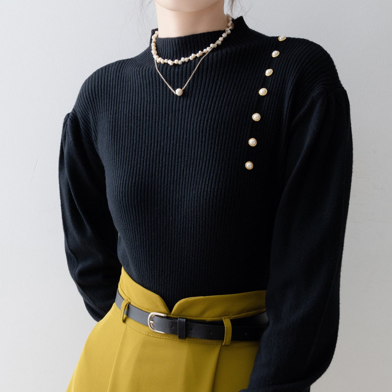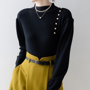 ボタン装飾付きリブ編みニットプルオーバー Me1688