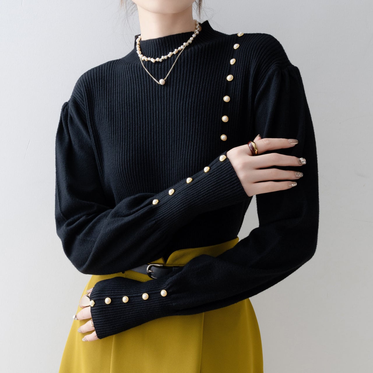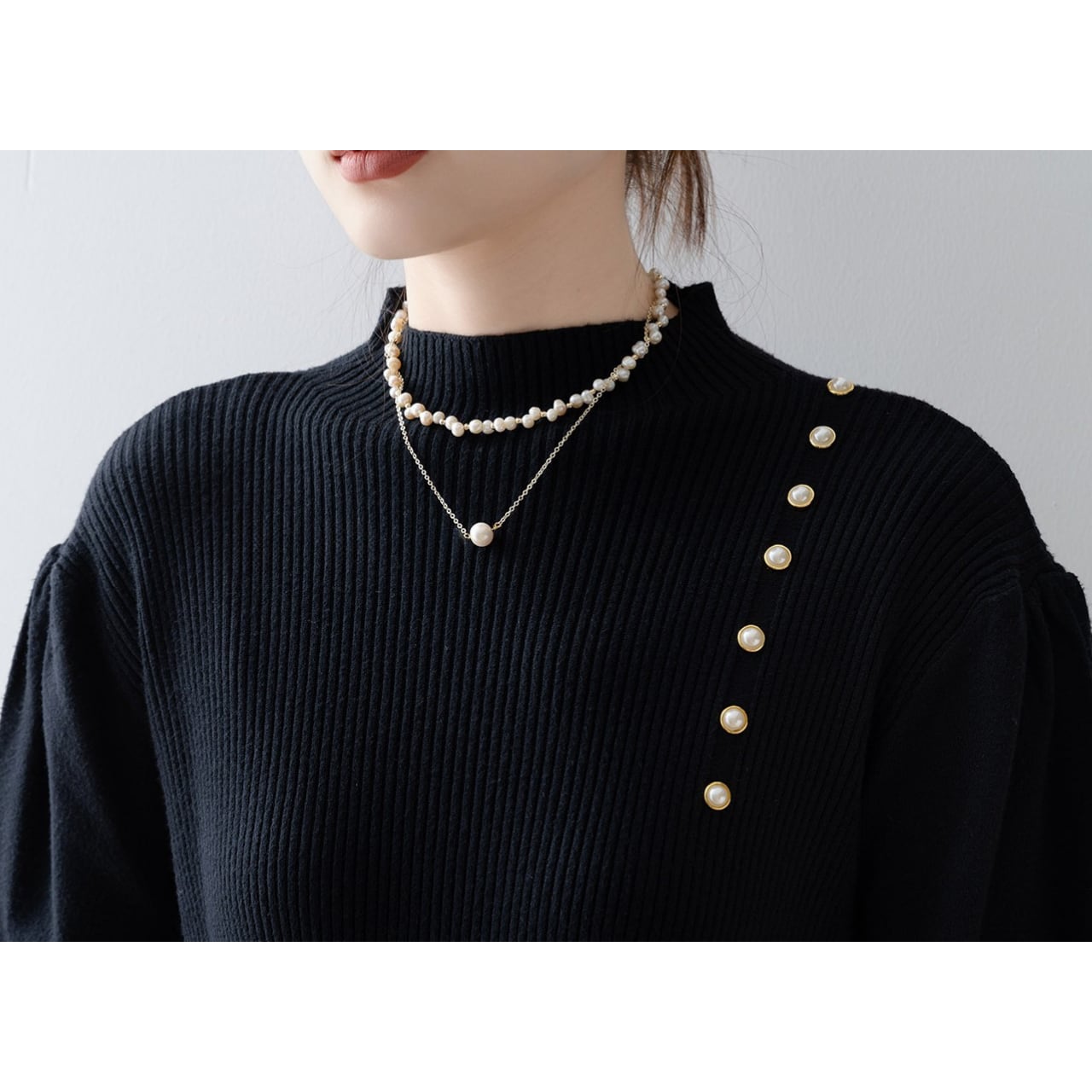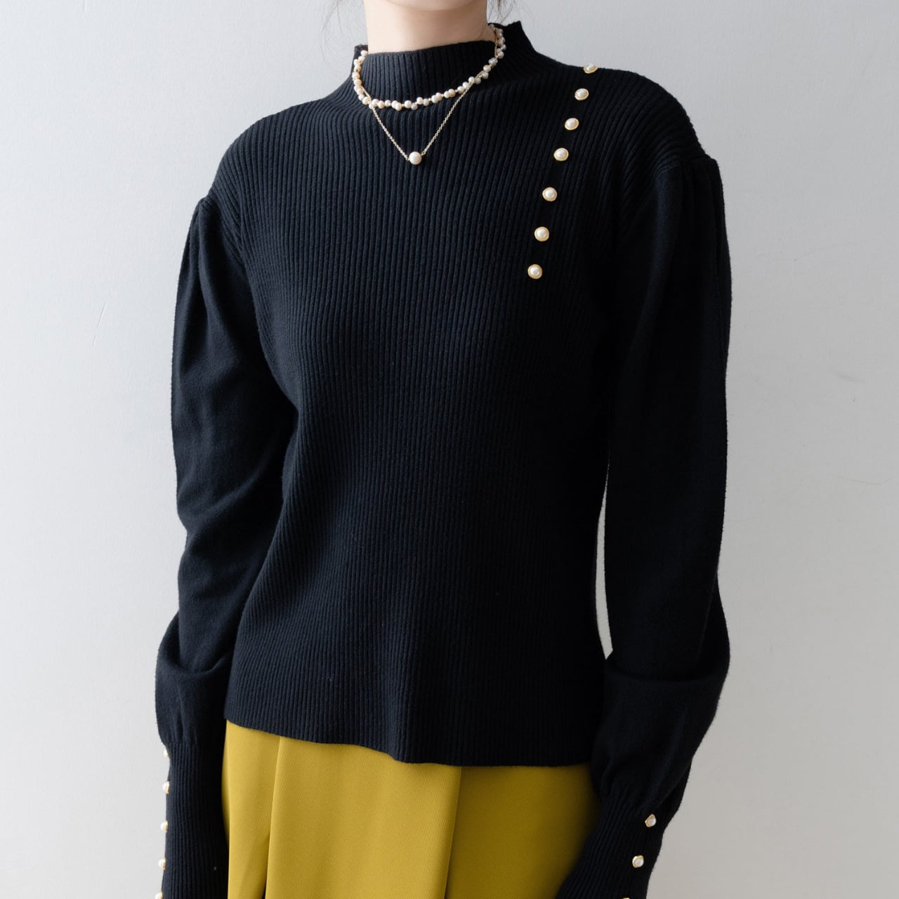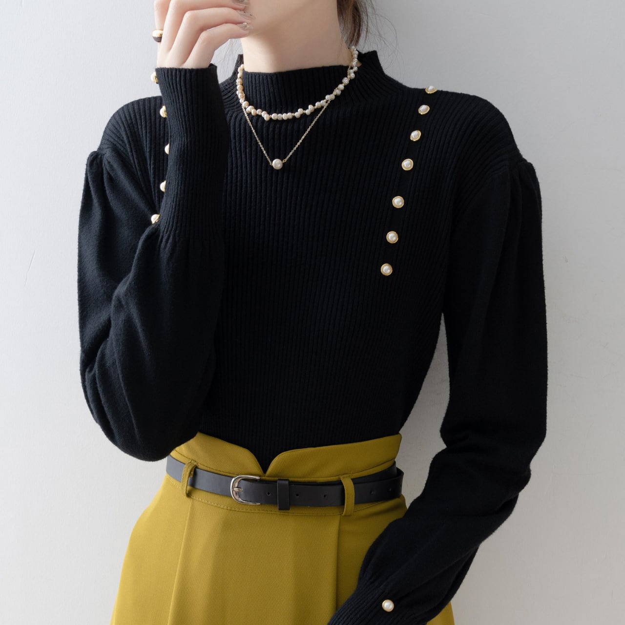 ボタン装飾付きリブ編みニットプルオーバー Me1688