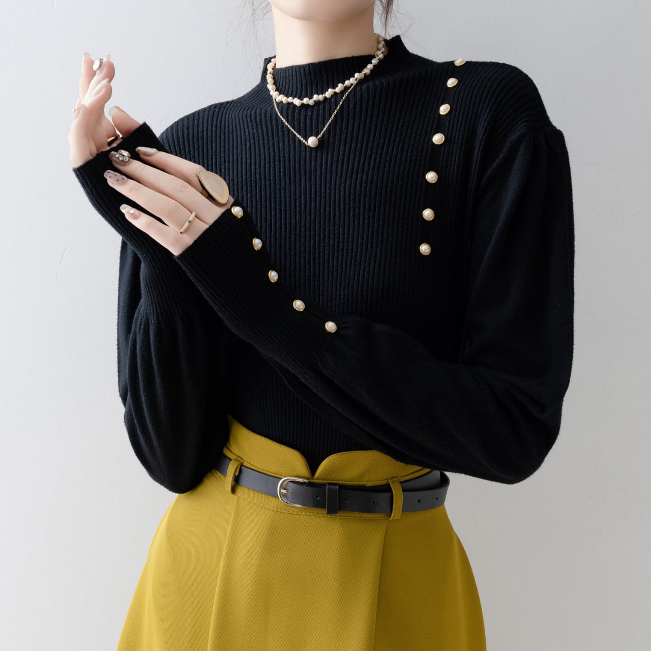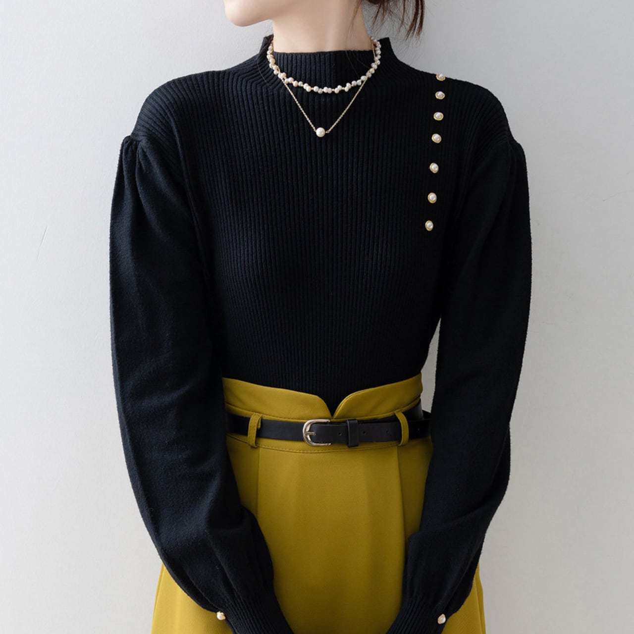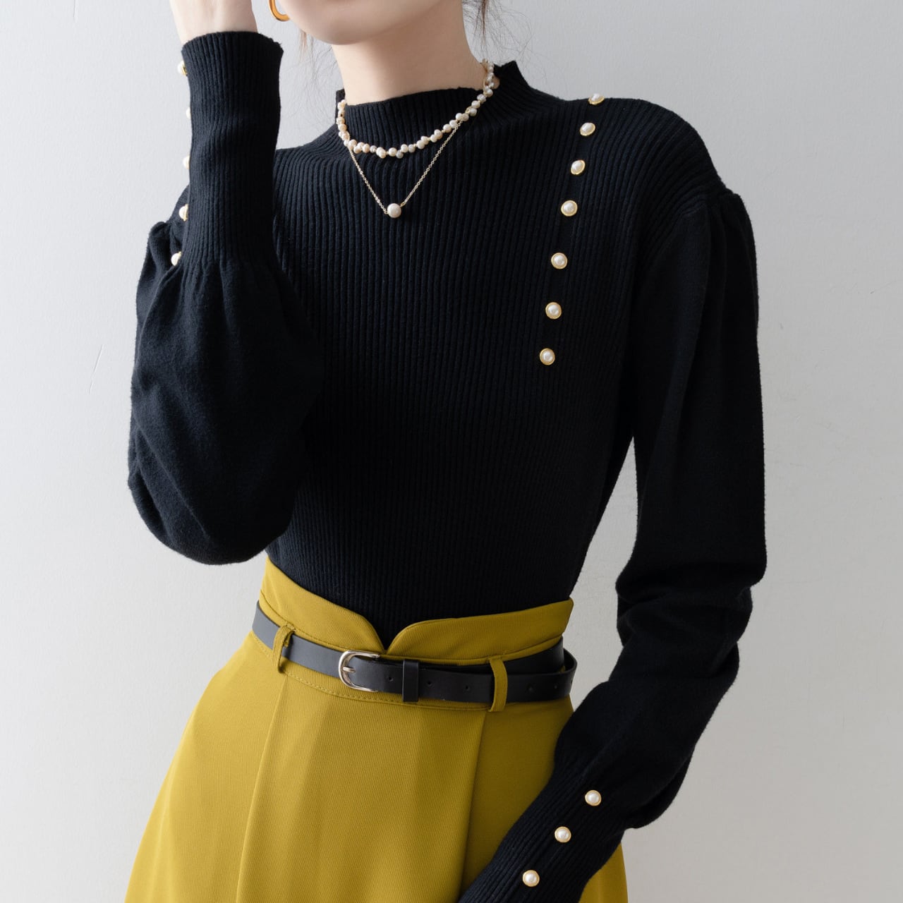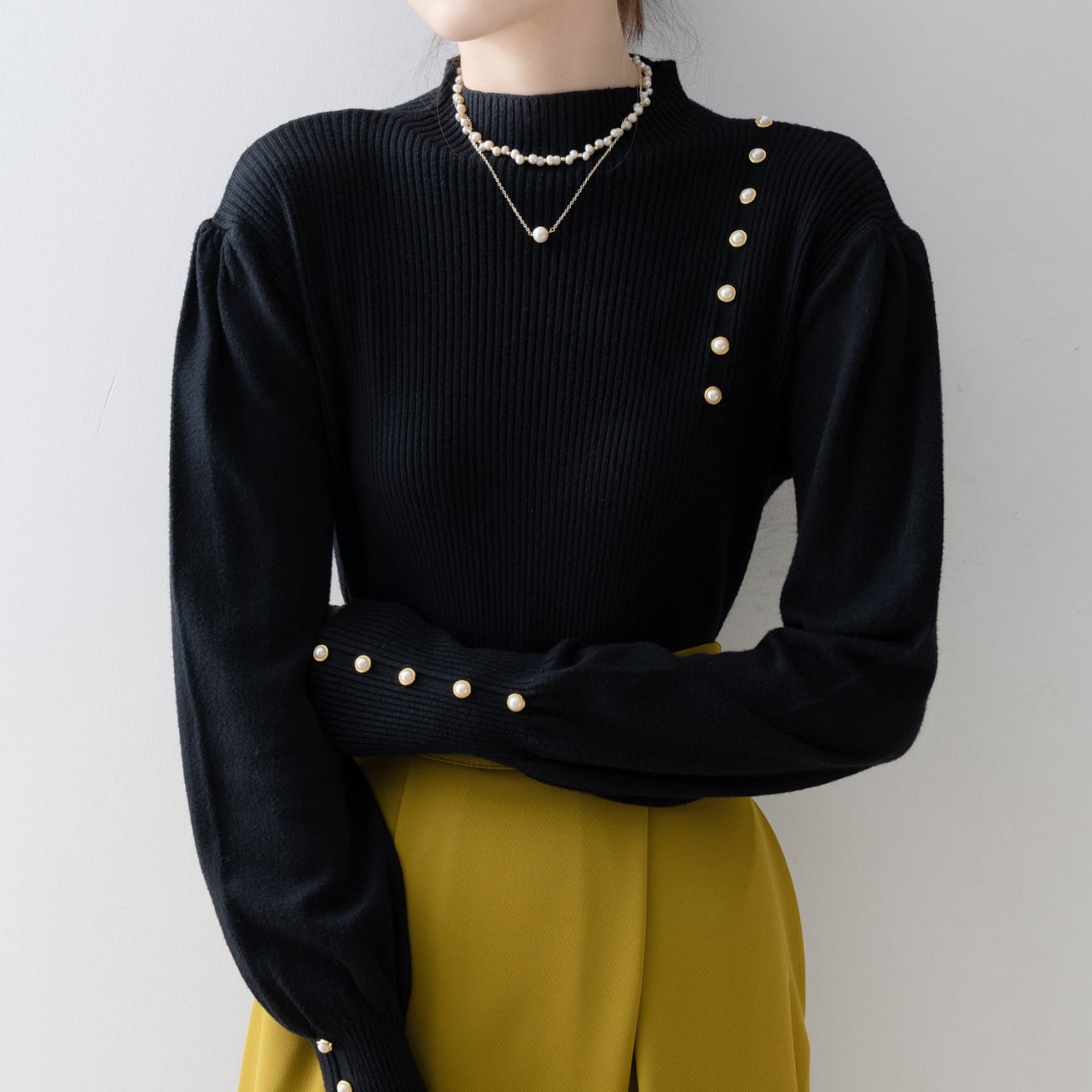 ボタン装飾付きリブ編みニットプルオーバー Me1688