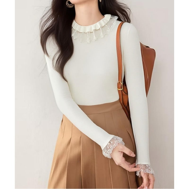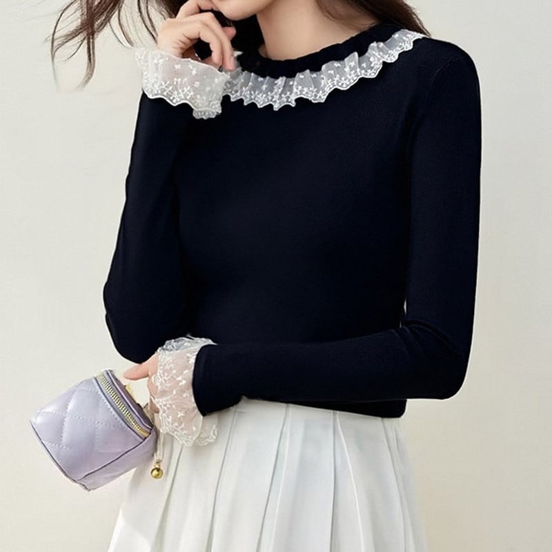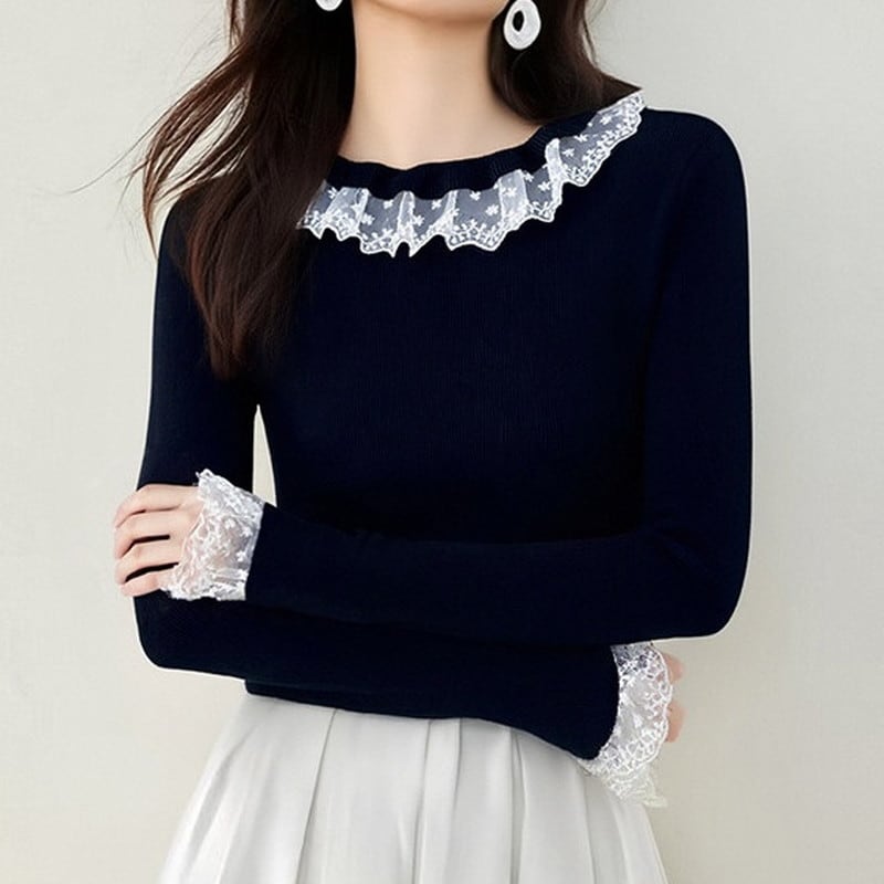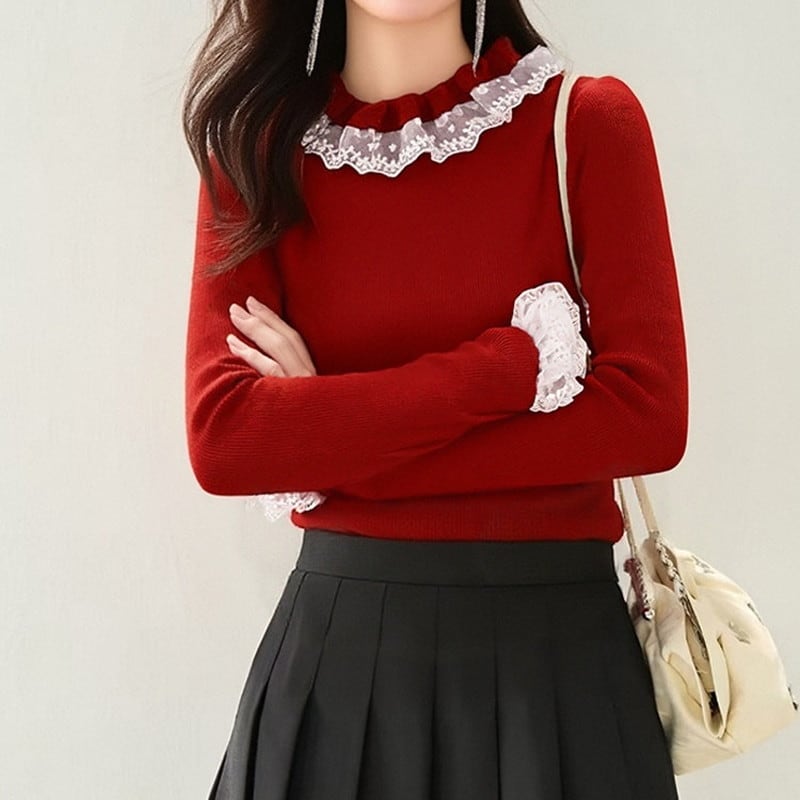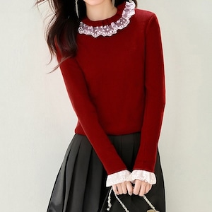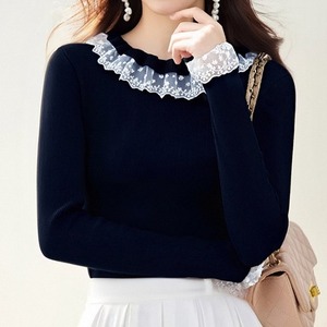 レース襟付きニットトップス Me1695
