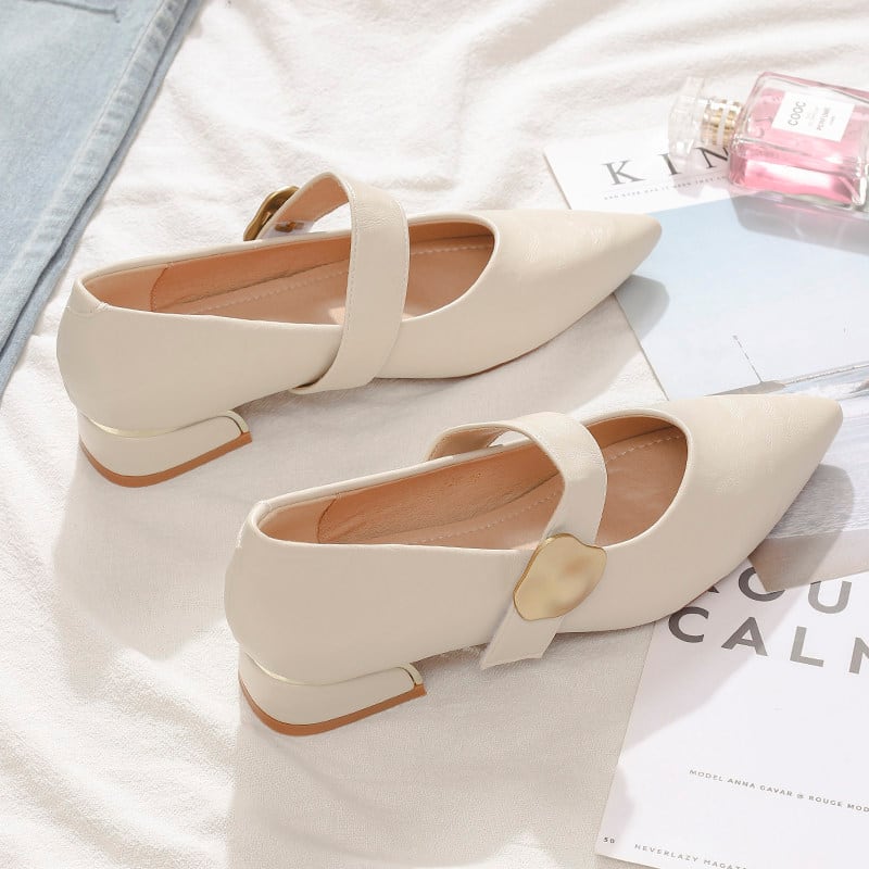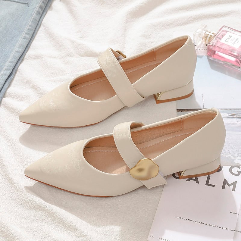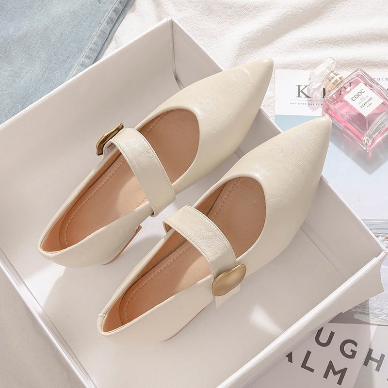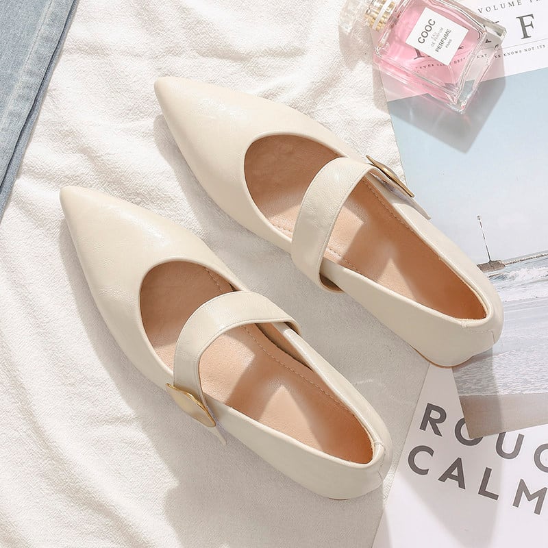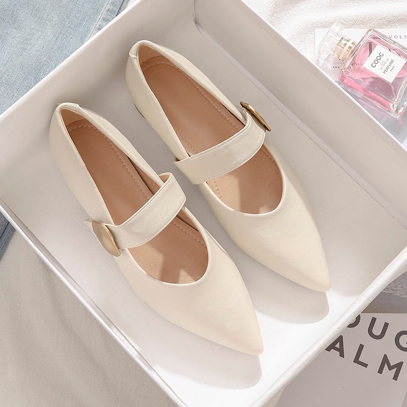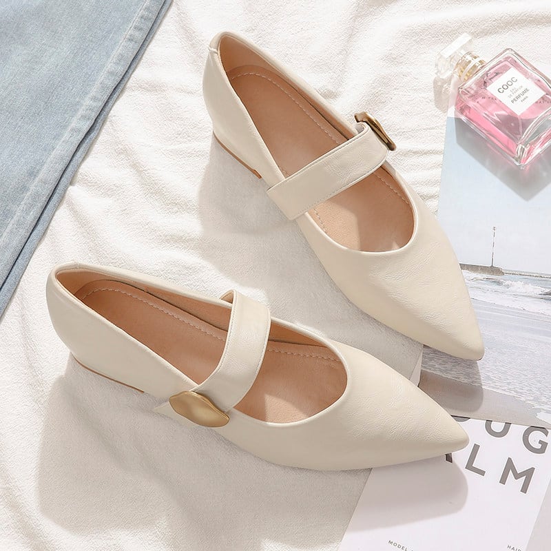 ポインテッドトゥが足元をきれいに見せ、きちんと感と女性らしさを両立。
