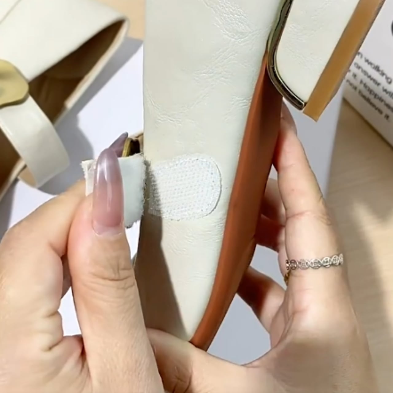 甲をやさしくホールドするデザインのローヒールパンプスです。
