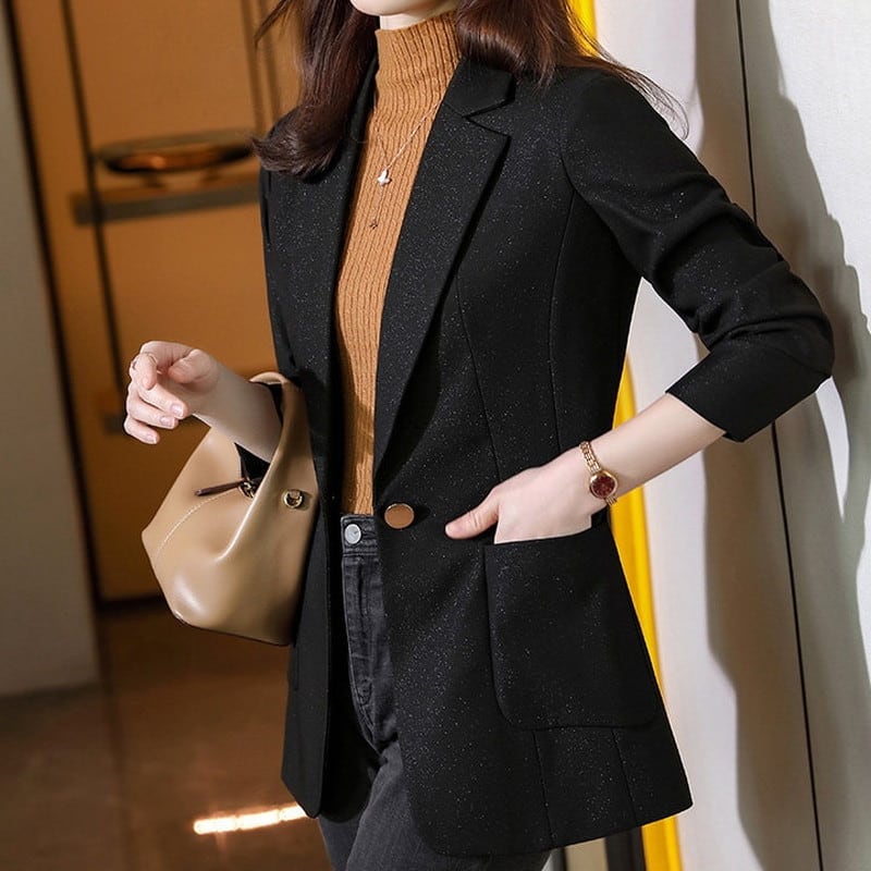 繊細なラメを織り込んだ生地が、動くたびにさりげなく煌めくテーラードジャケットです。