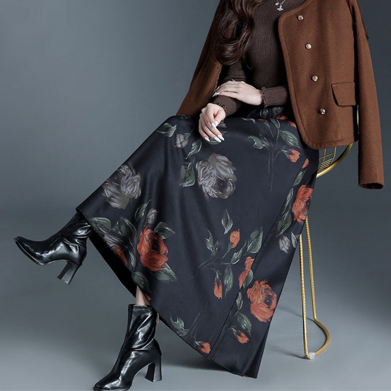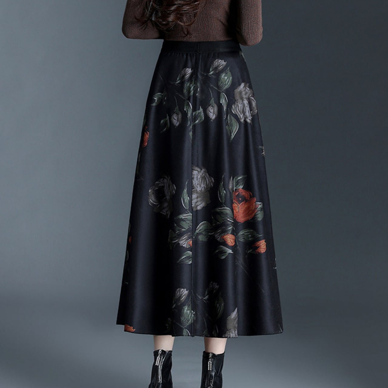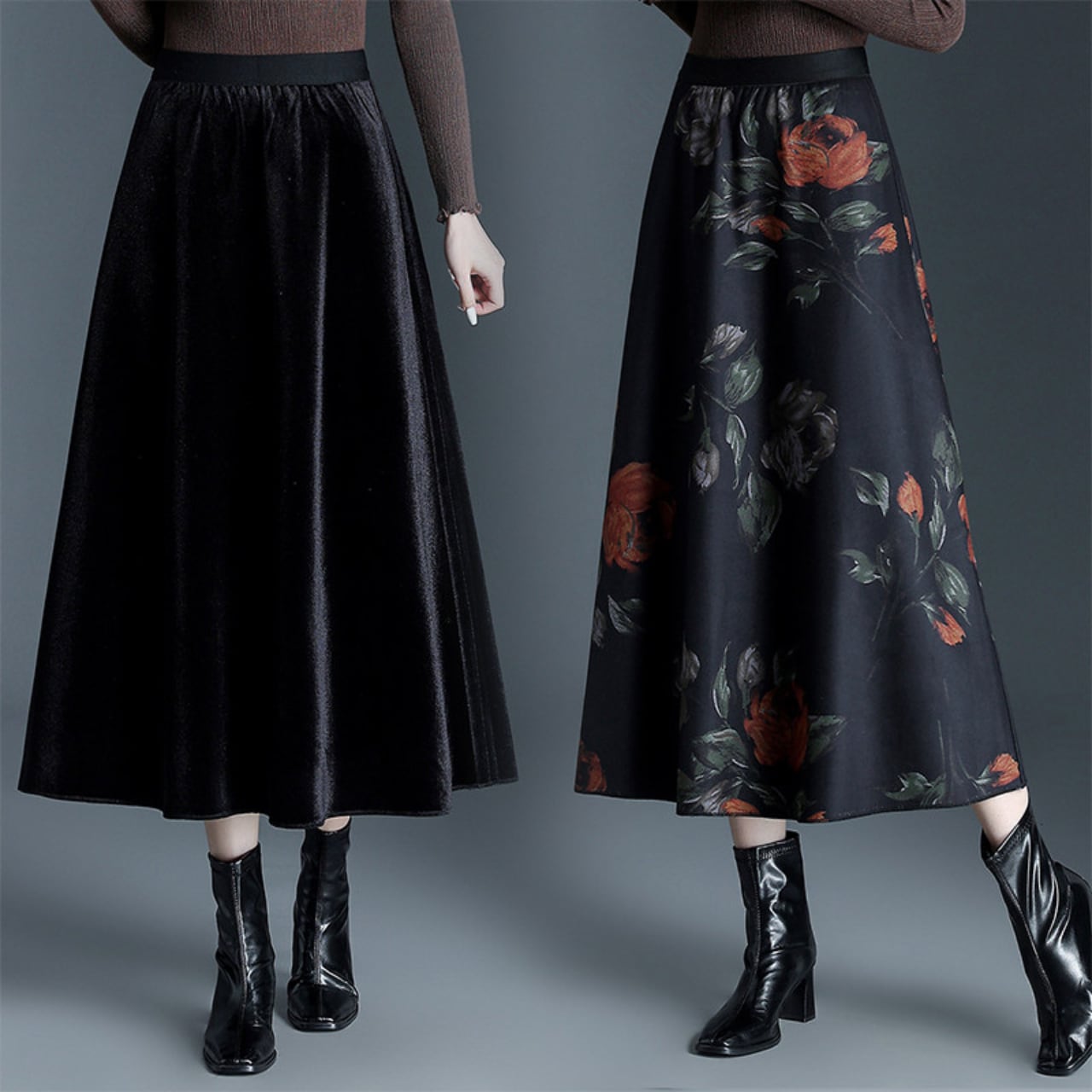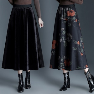 花柄&ベルベットリバーシブルスカート Me1704