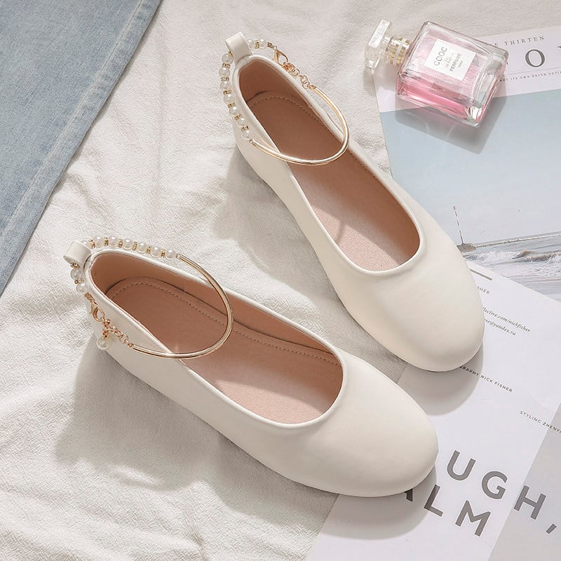 パールストラップフラットパンプス Me1714