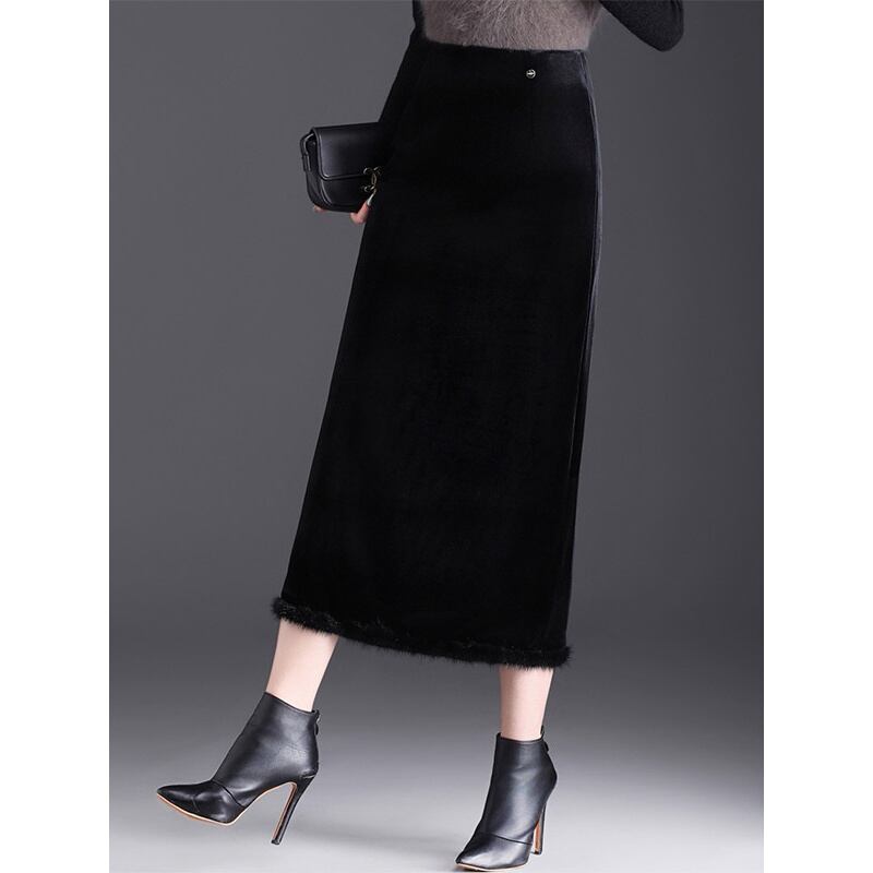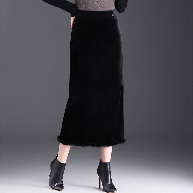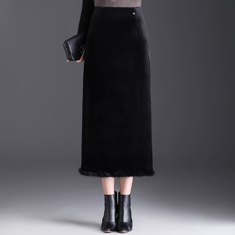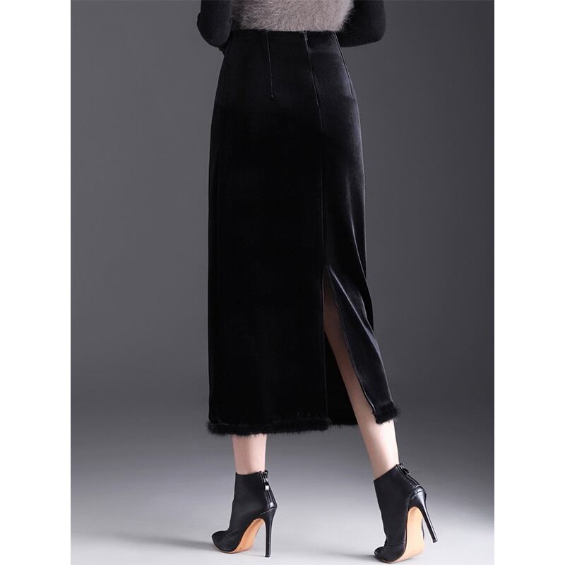 ファー付きストレートベロアスカート Me1713