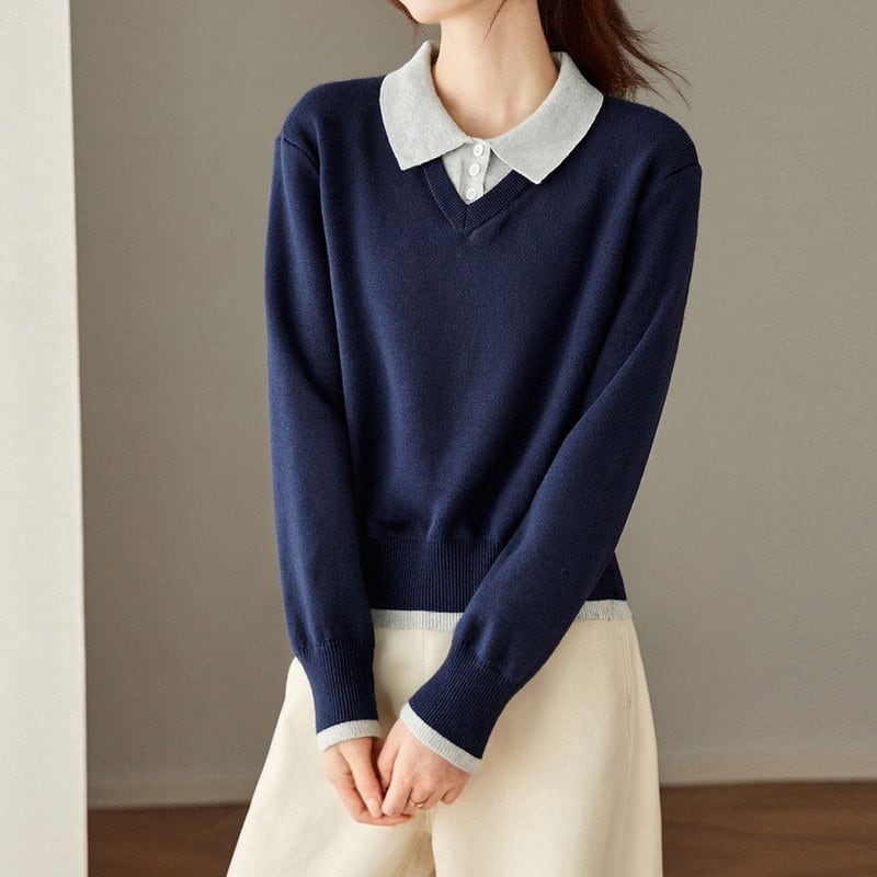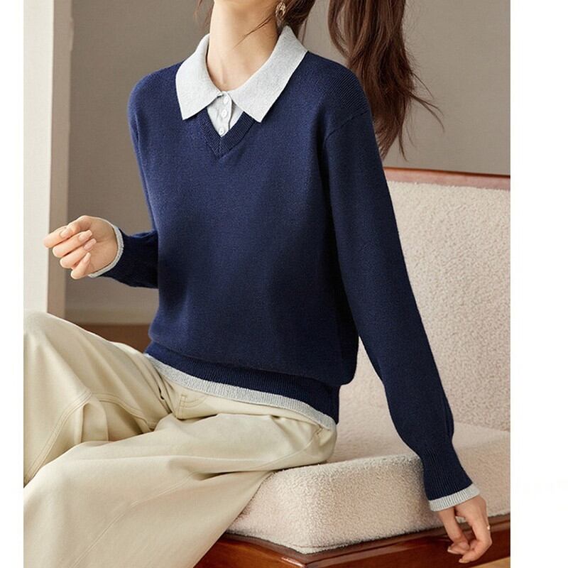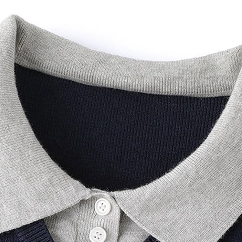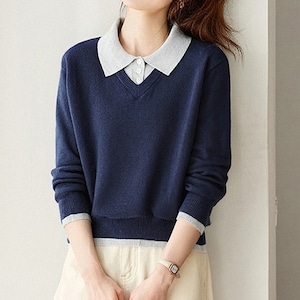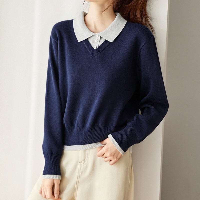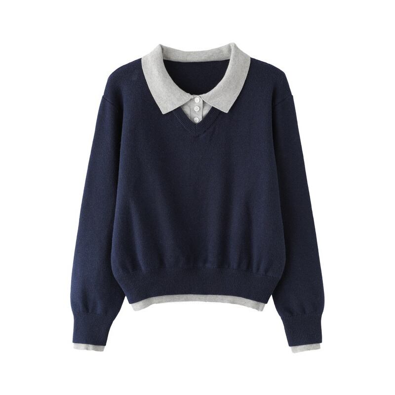 ポロカラーレイヤード風ニットトップス Me1712