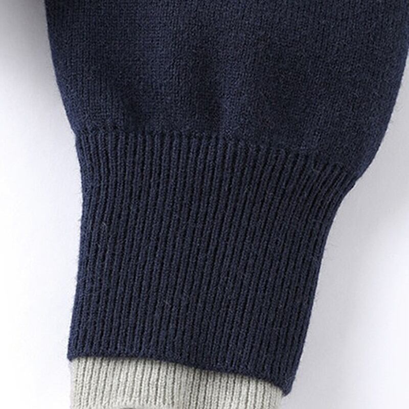 首元の配色デザインが顔周りに知的なアクセントを添え、程よい開きのVラインですっきりとしたデコルテを演出。