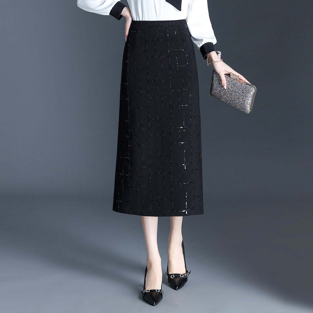 スリット入りチェック柄タイトスカート Me1744