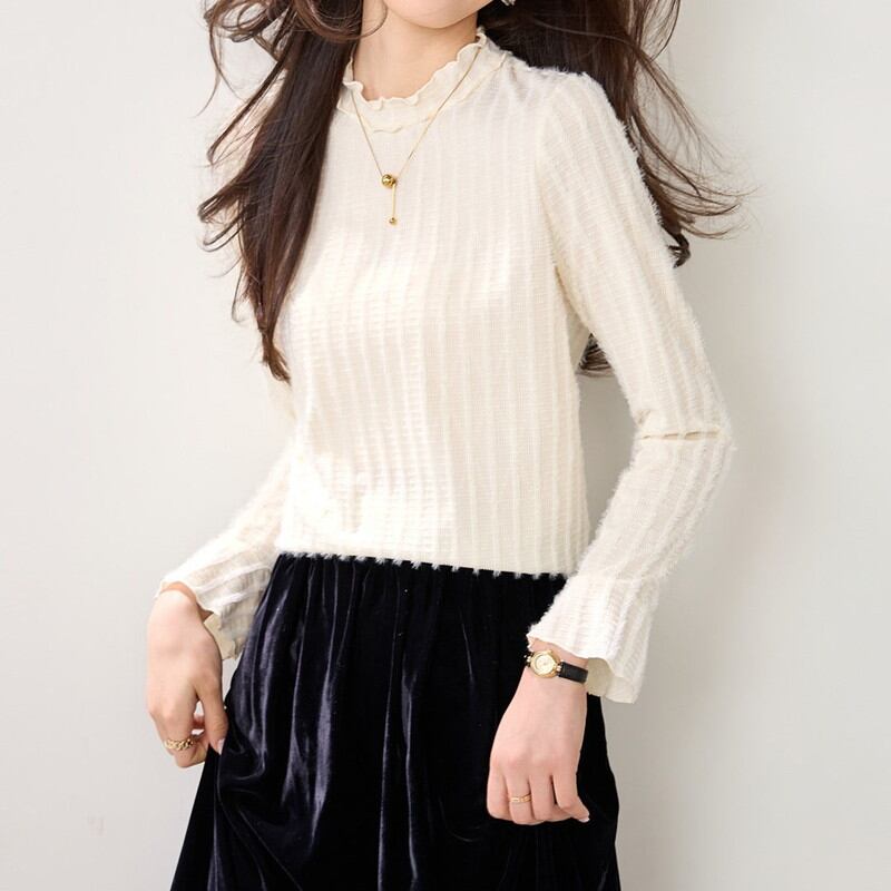 首元のフリルが可愛らしいトップスです。