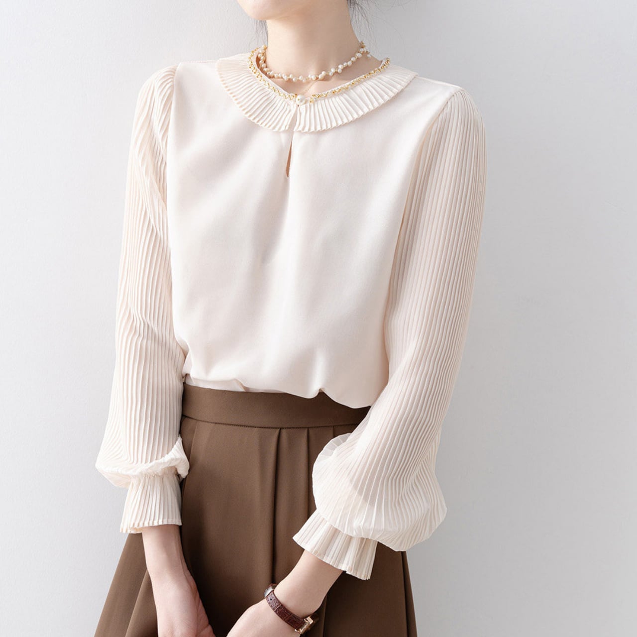 パール付きプリーツスリーブブラウス Me1768