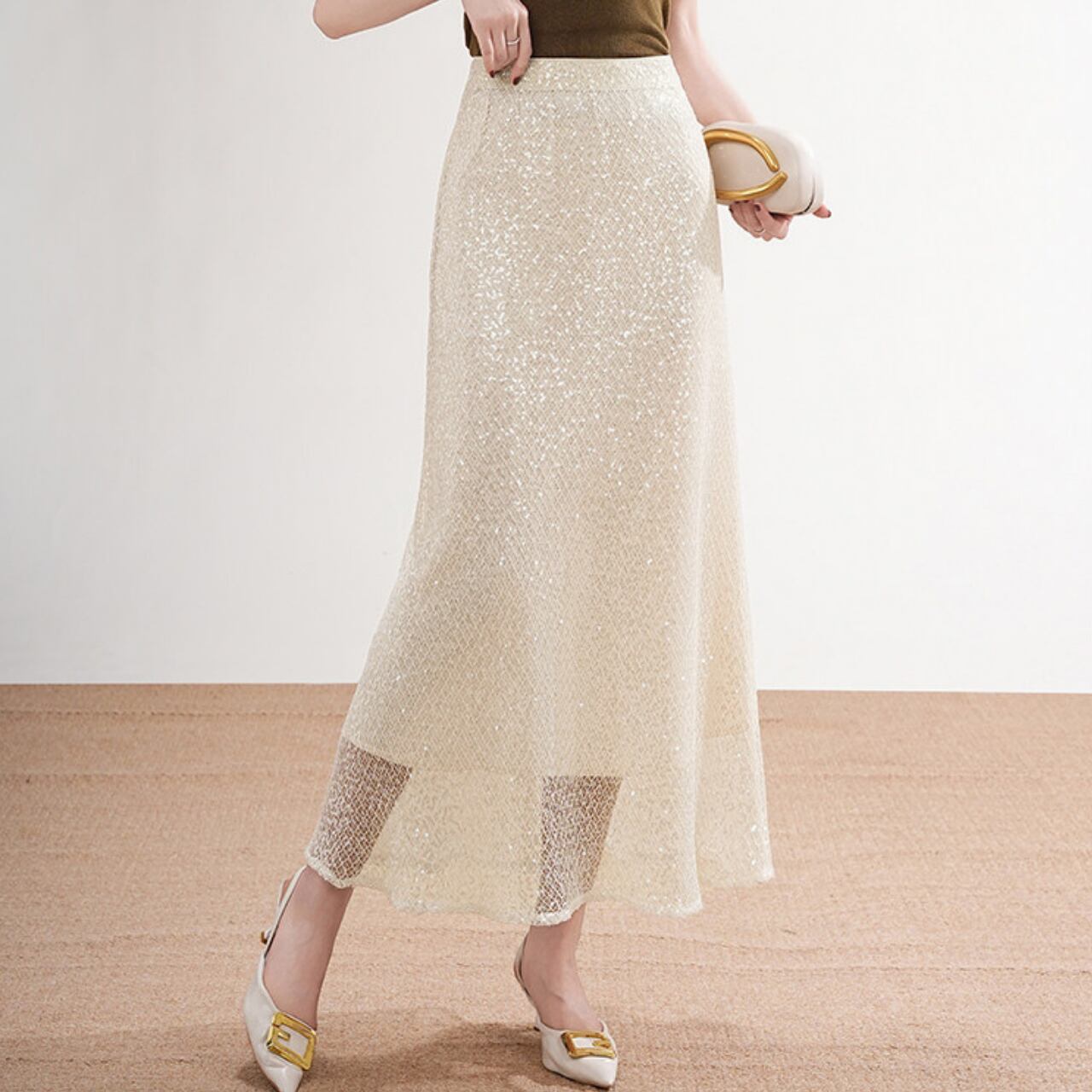 スパンコール入りメッシュAラインスカート Me1773