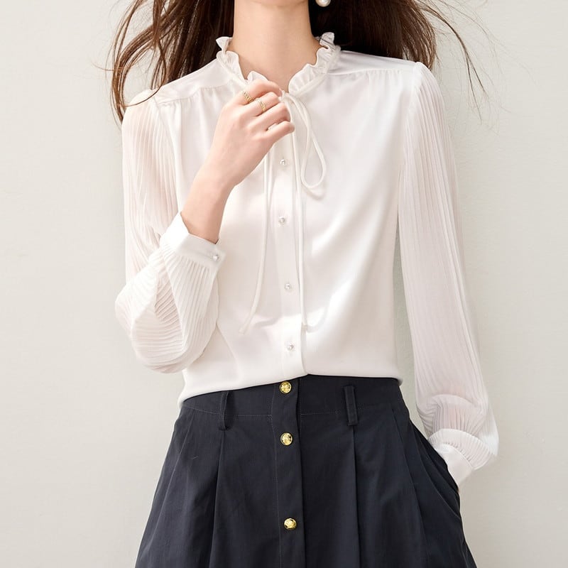 フリル襟プリーツスリーブブラウス Me1780