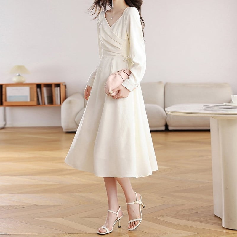 上品な印象を与えるカシュクールデザインのワンピースです。