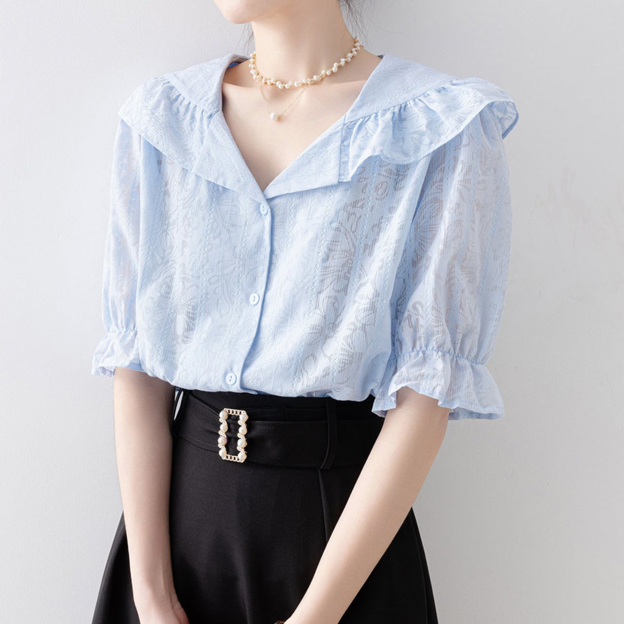 ビッグカラーフリルシアーブラウス Me1808