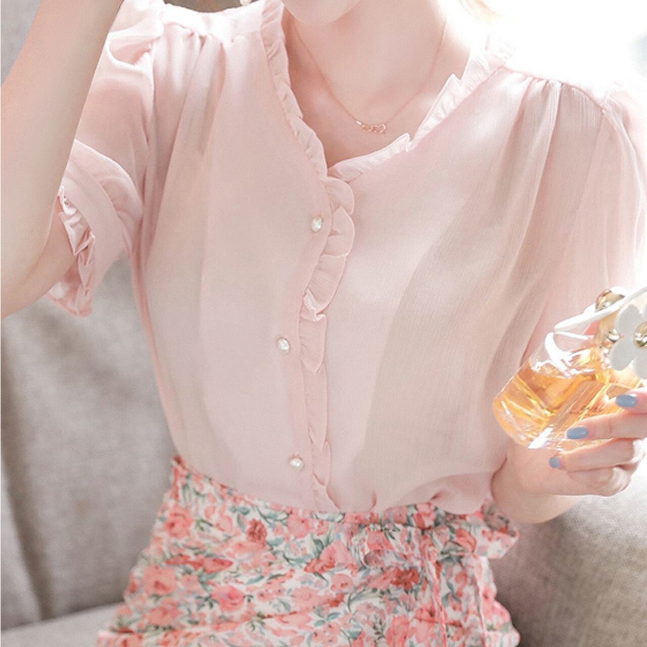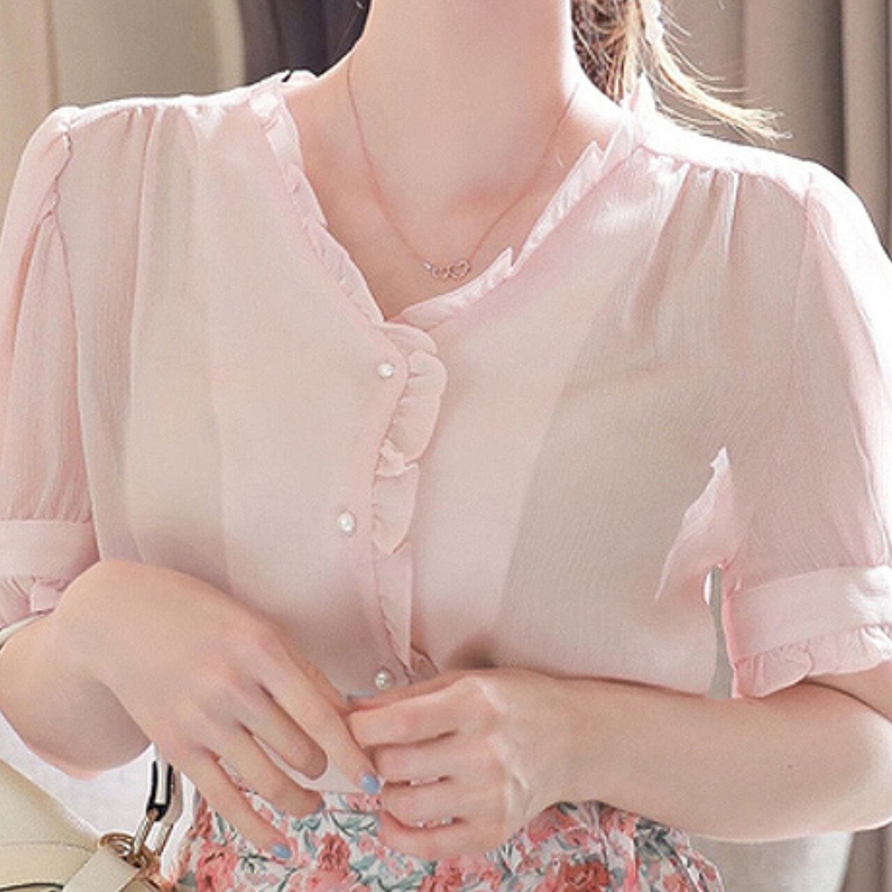 Vネックシフォンブラウス Me0105