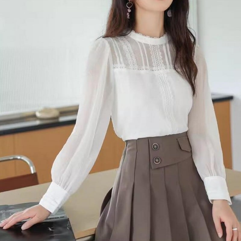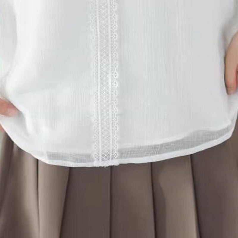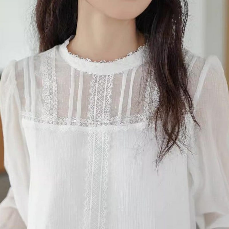 レースラウンドネックシアーブラウス Me0398