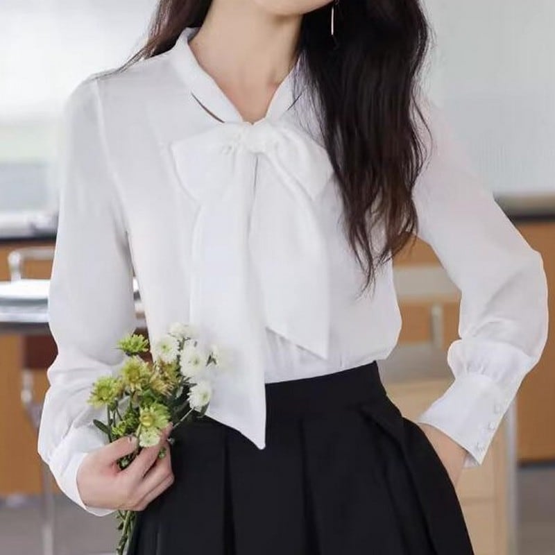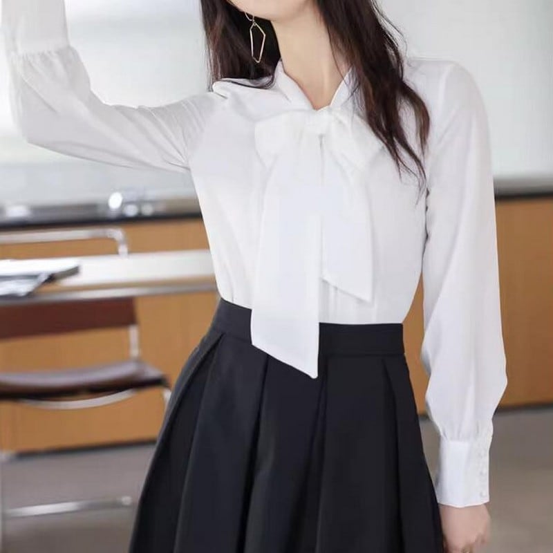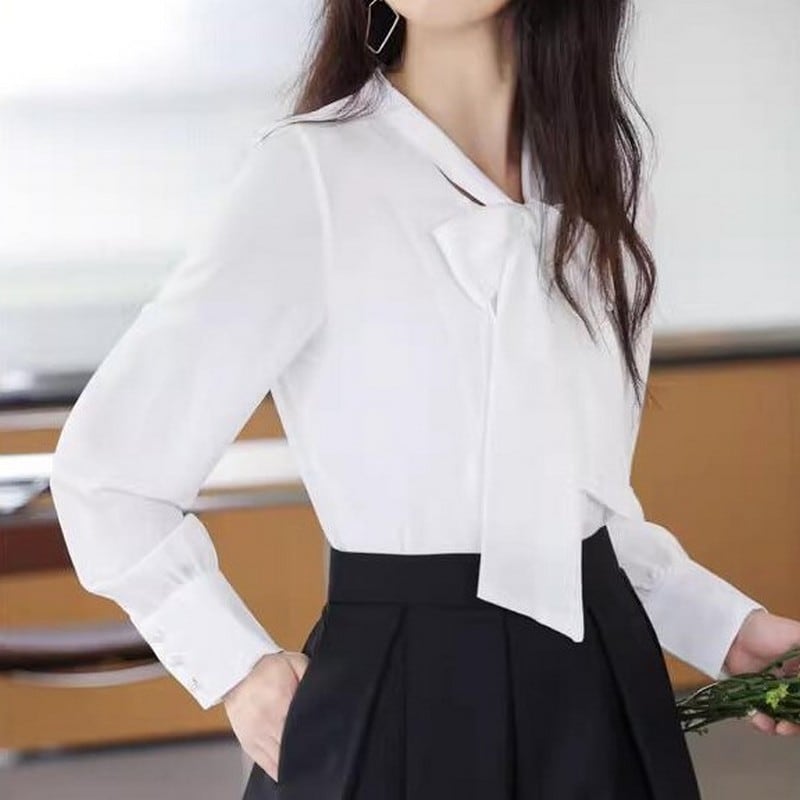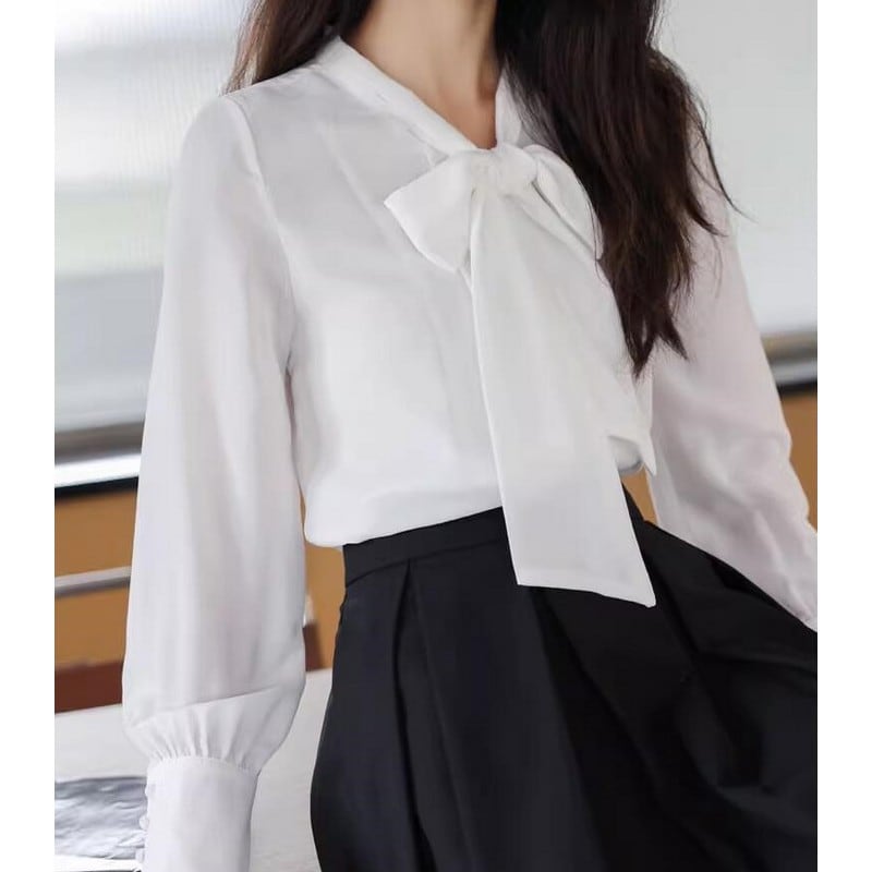 ビッグボウタイ長袖ブラウス Me0406