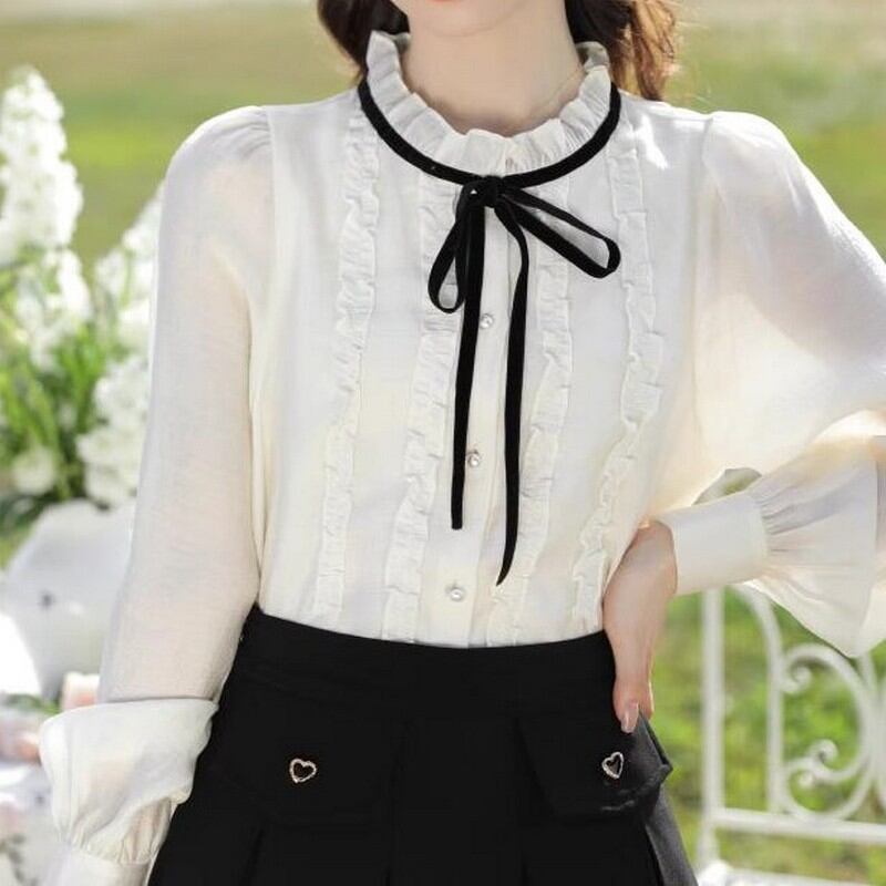 リボン付き前フリルシャツ Me0416