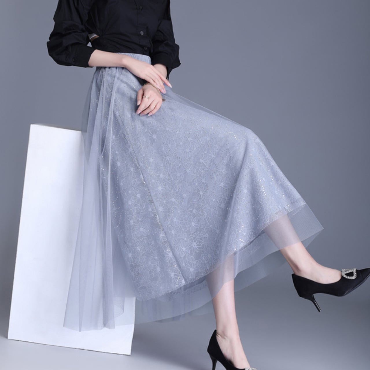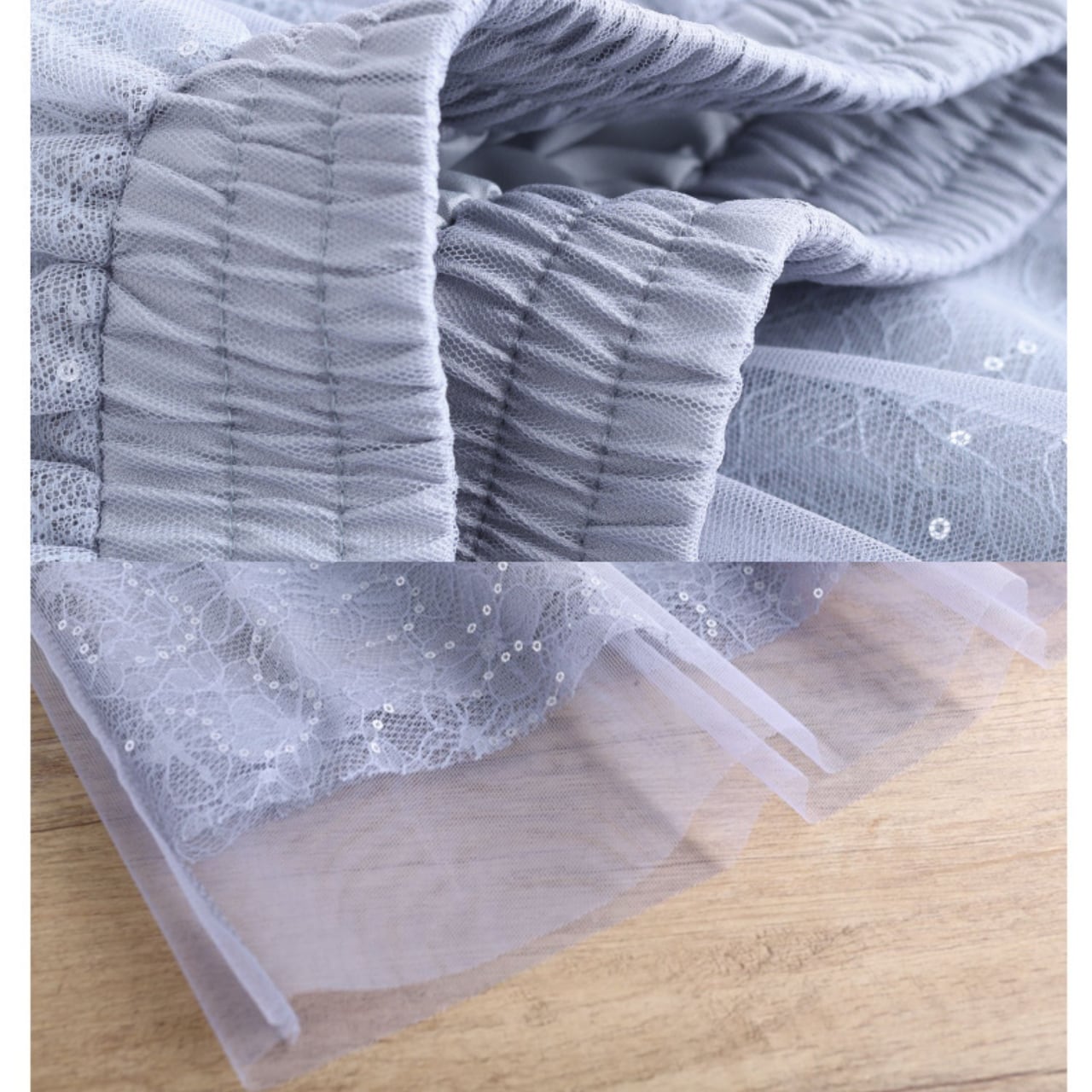 散りばめられたスパンコールと、ちらりとのぞくレースが華やかなスカートです。