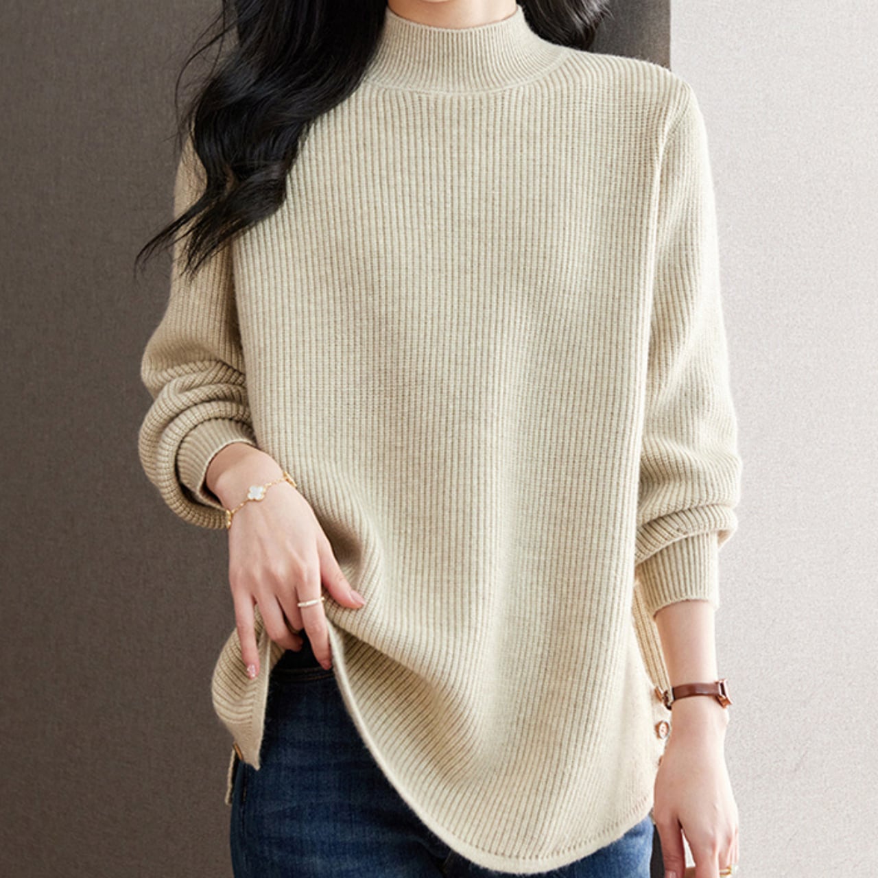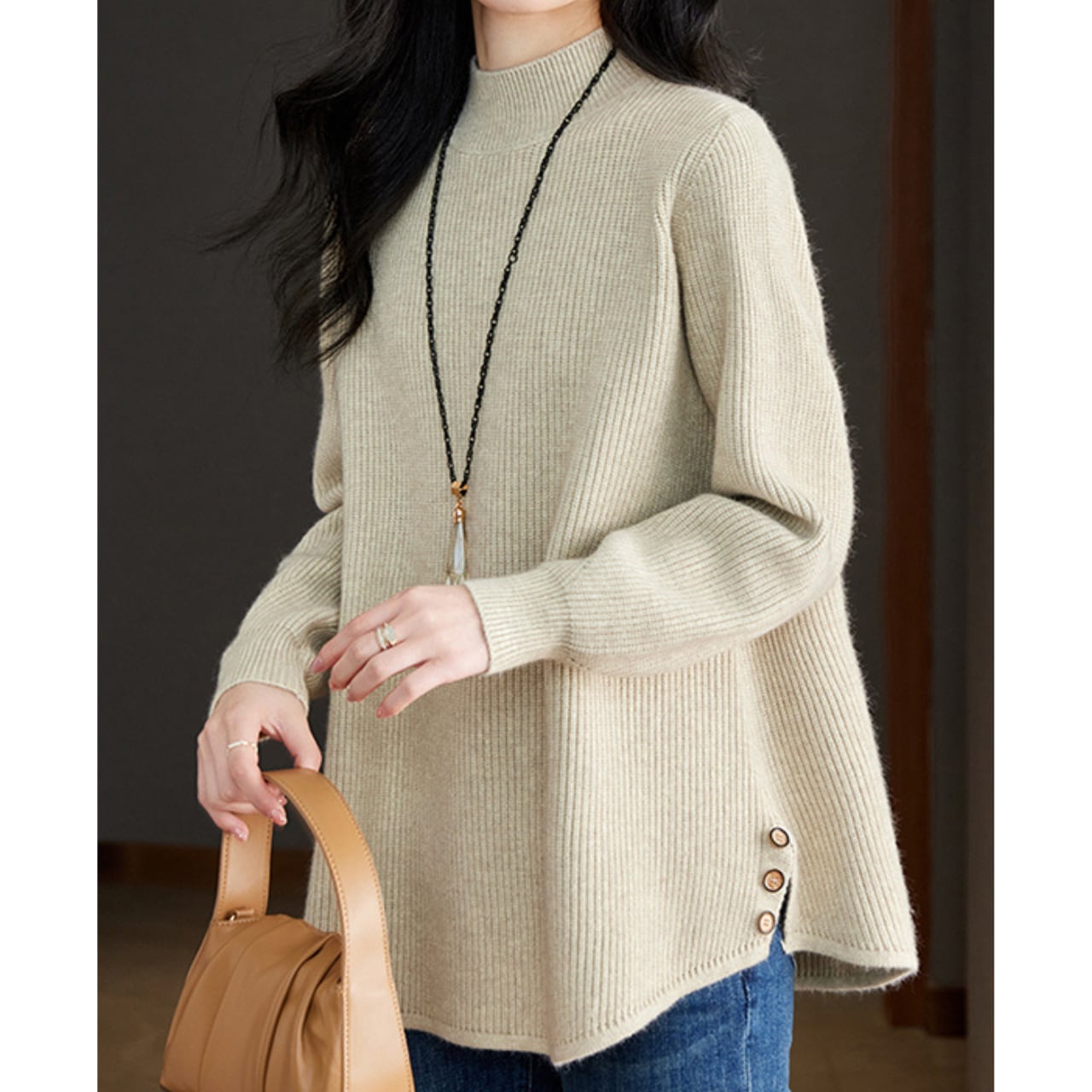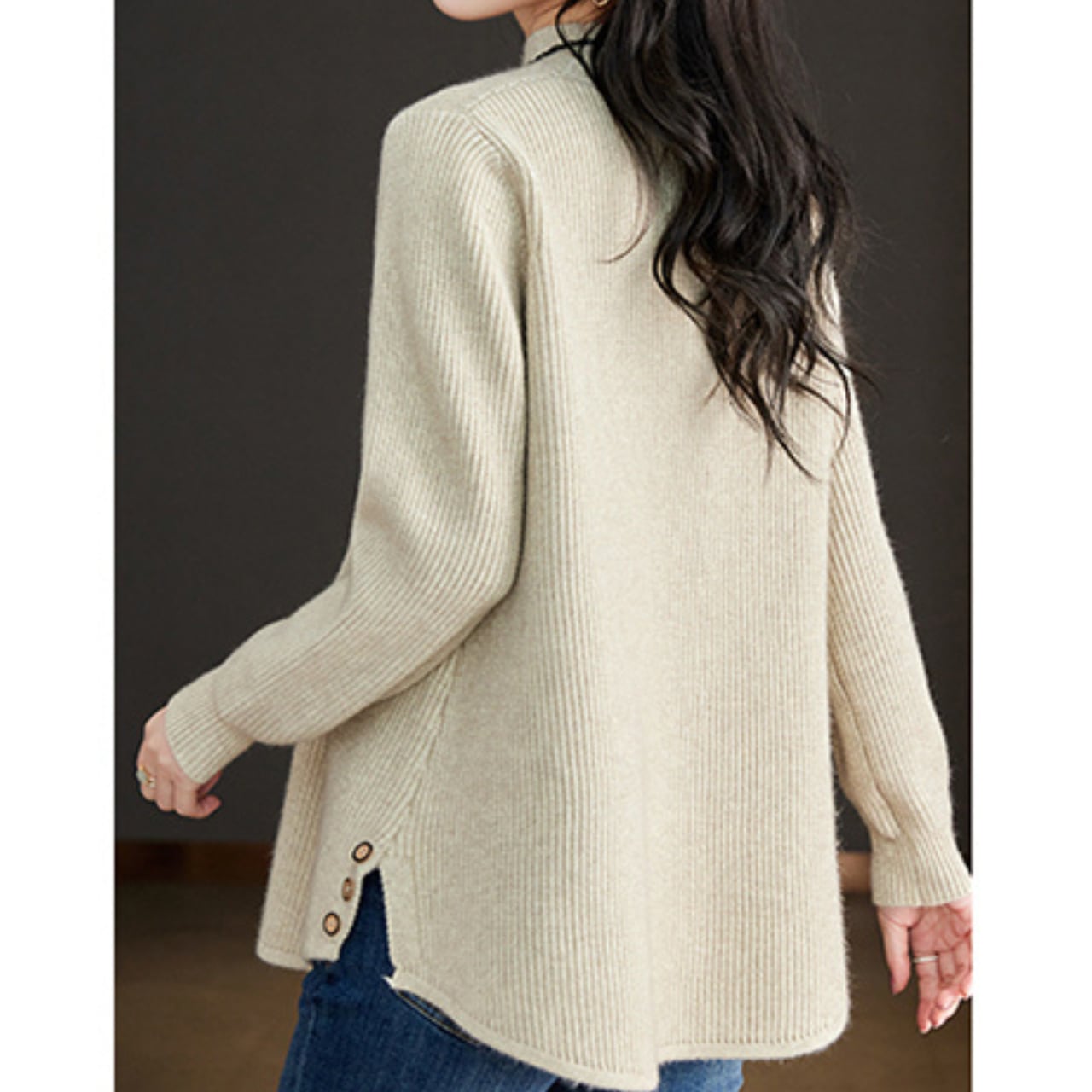 ゆったりしたシルエットでストレスフリーに着こなせるニットです。