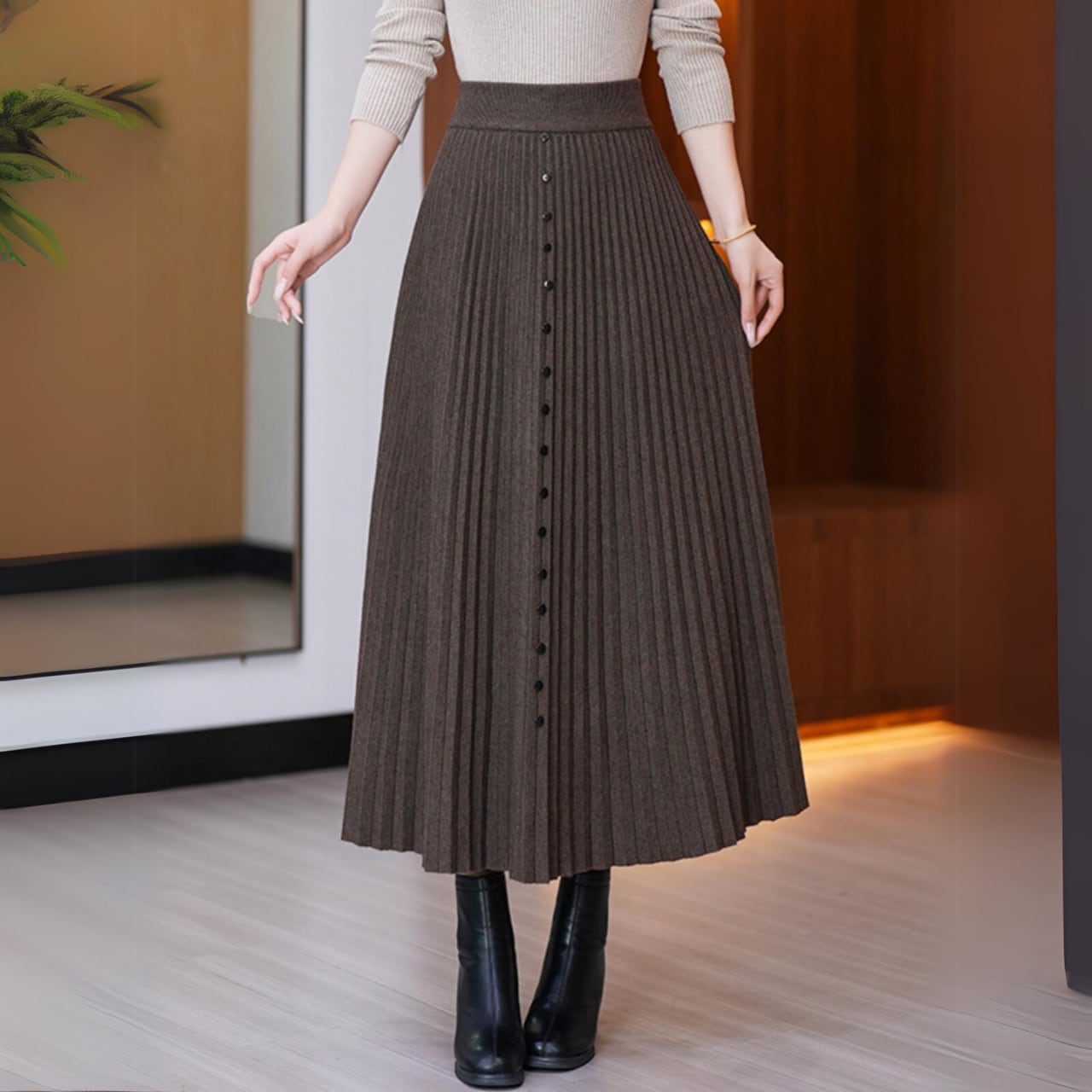 ボタン付きAラインプリーツスカート Me0640