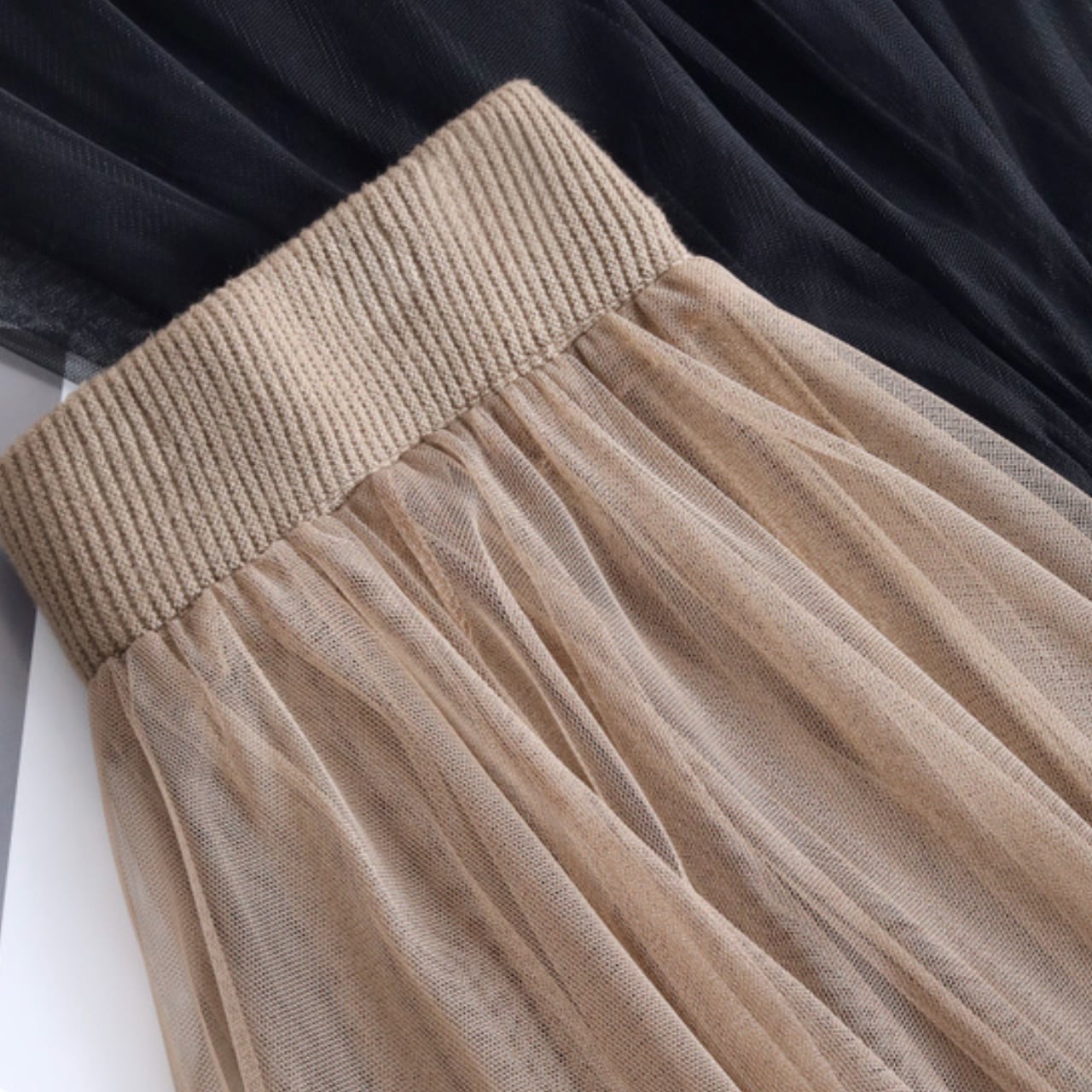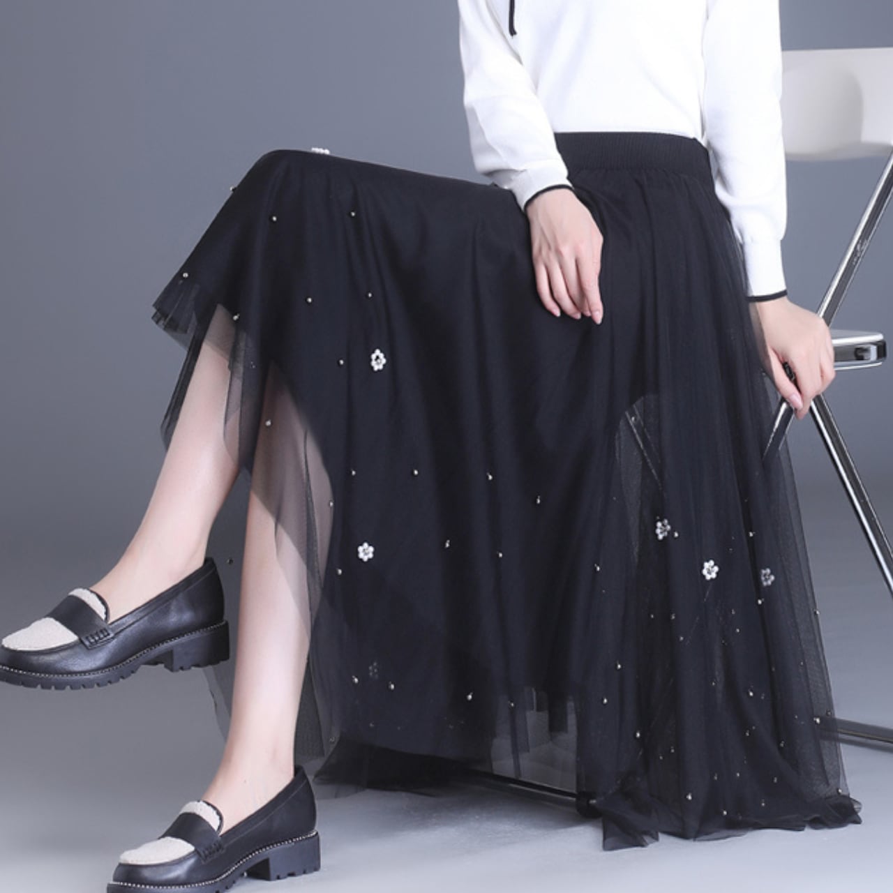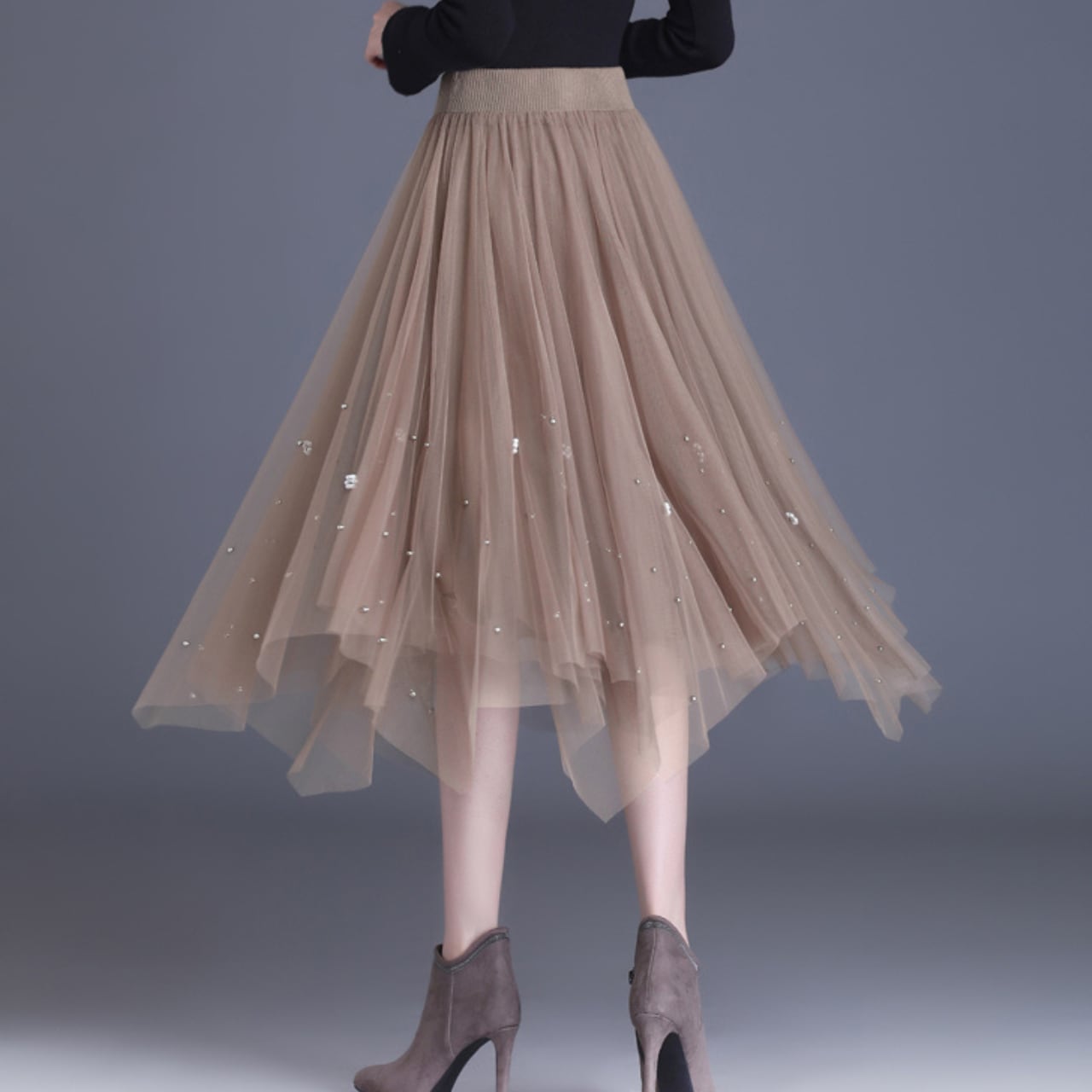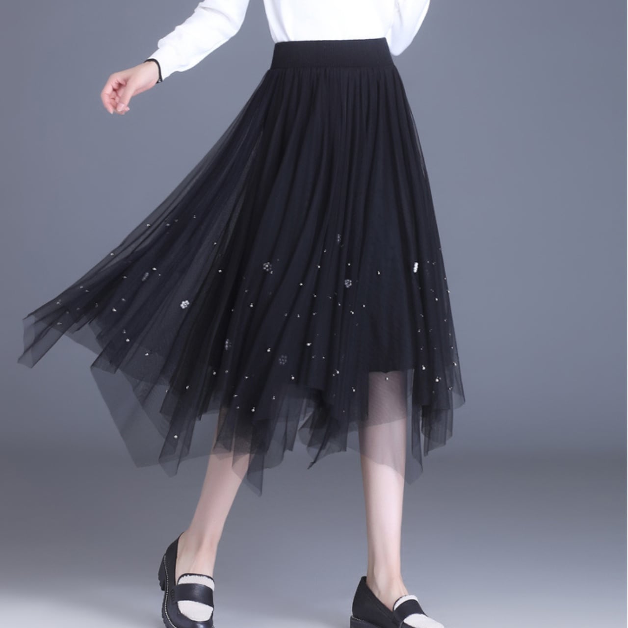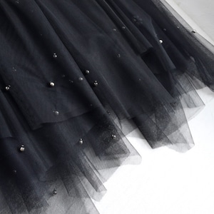 ビジュー付きアシンメトリーチュールスカート Me0676