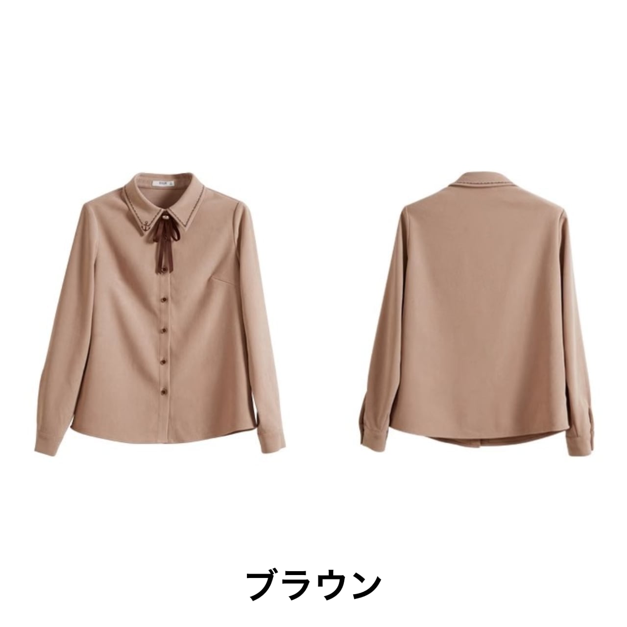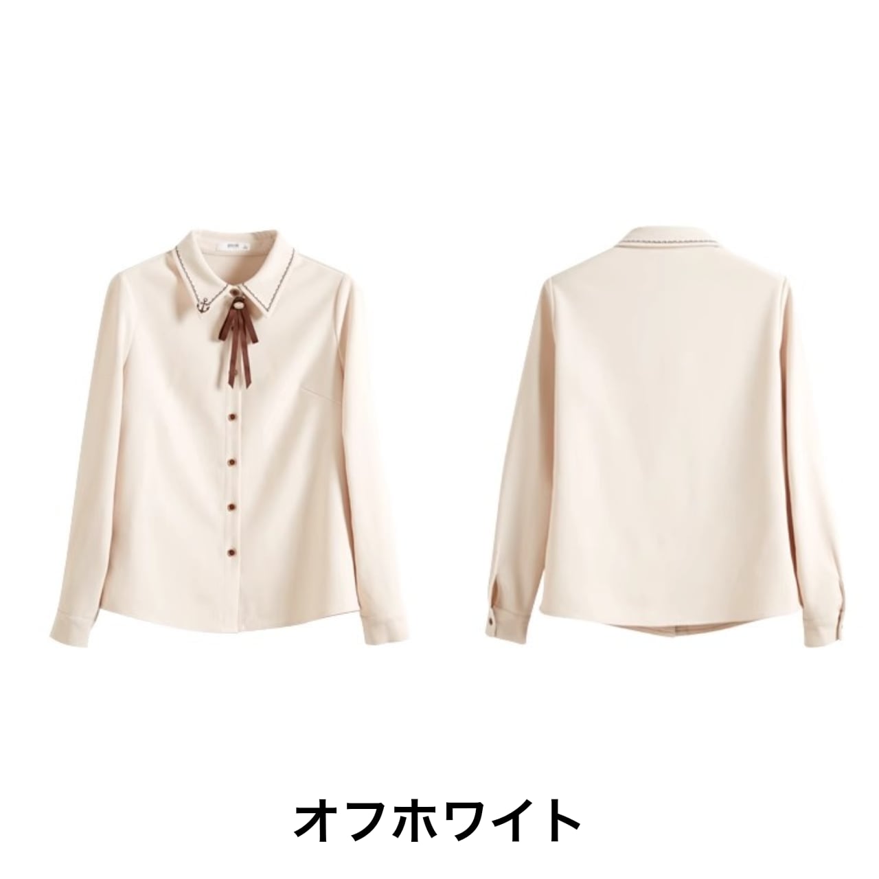 リボン付き襟ステッチブラウス Me0731
