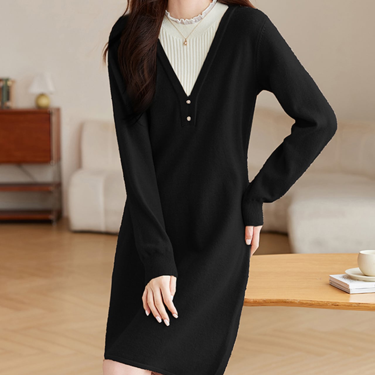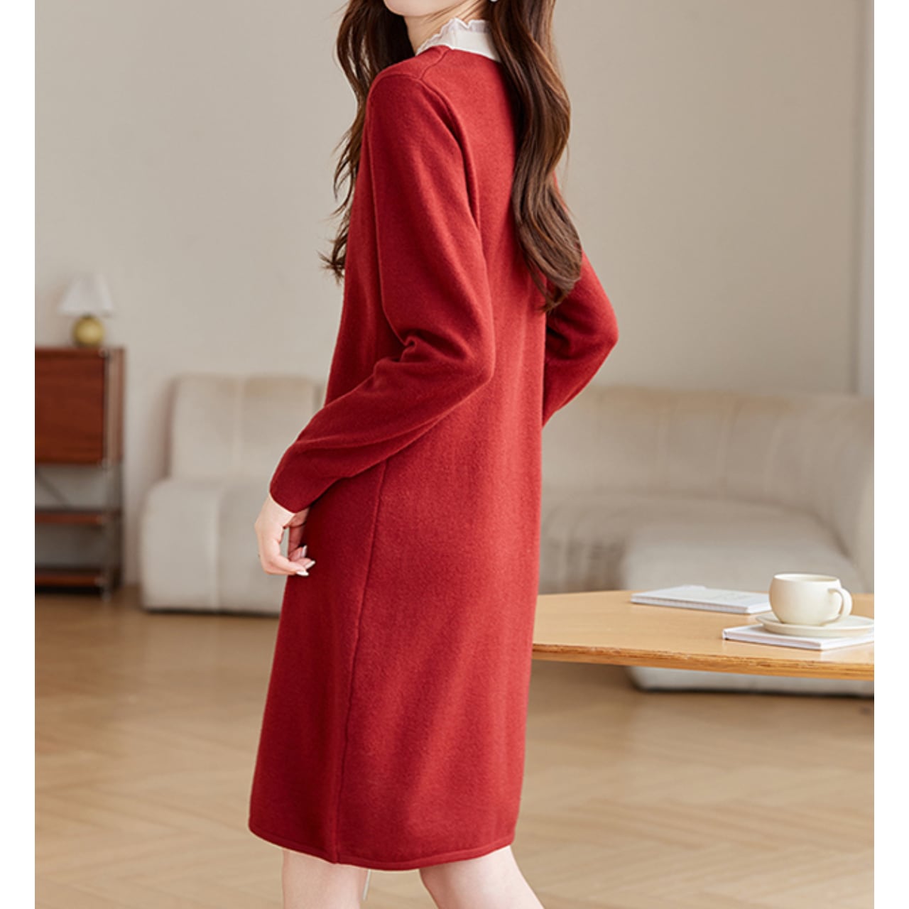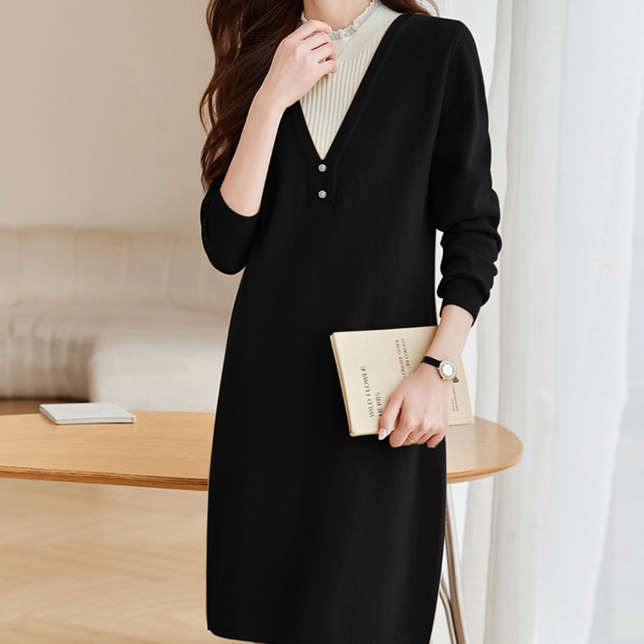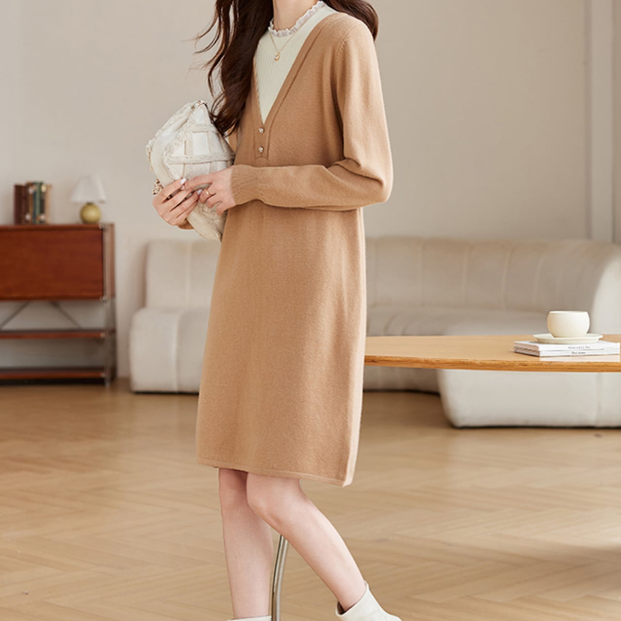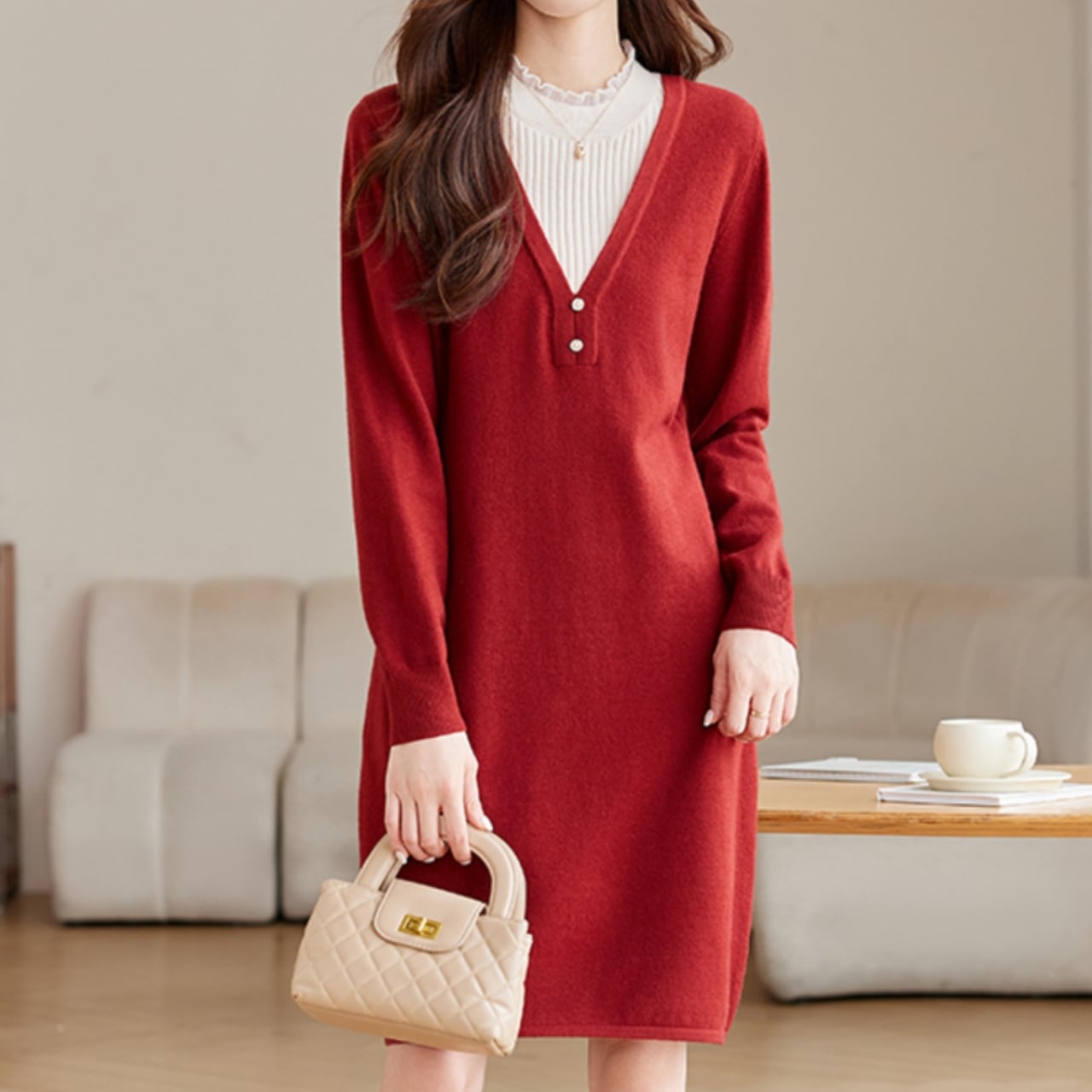 Vネックのエレガントなデザインが魅力的なワンピースです。