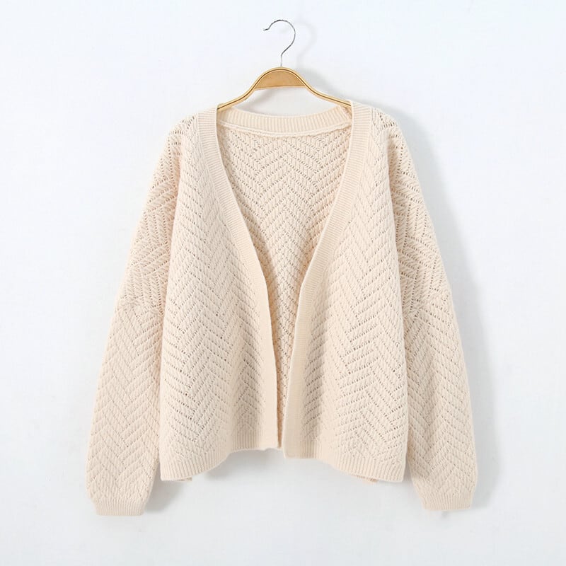 Vネックのロングスリーブカーディガンは、着回し力抜群のアイテムです。
