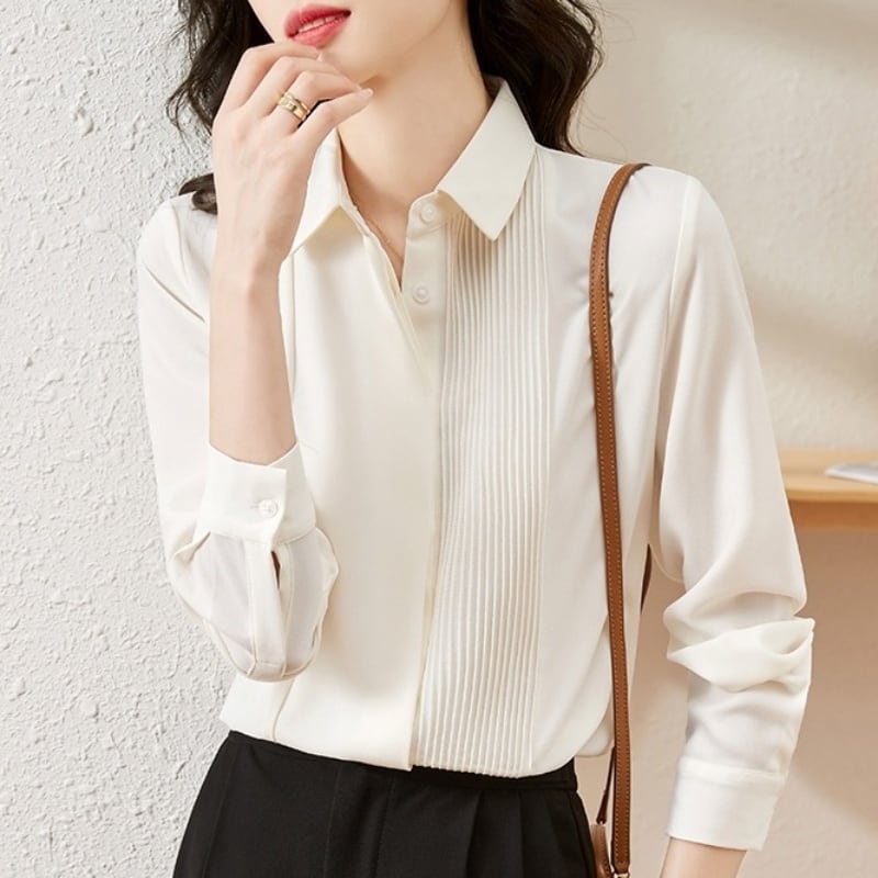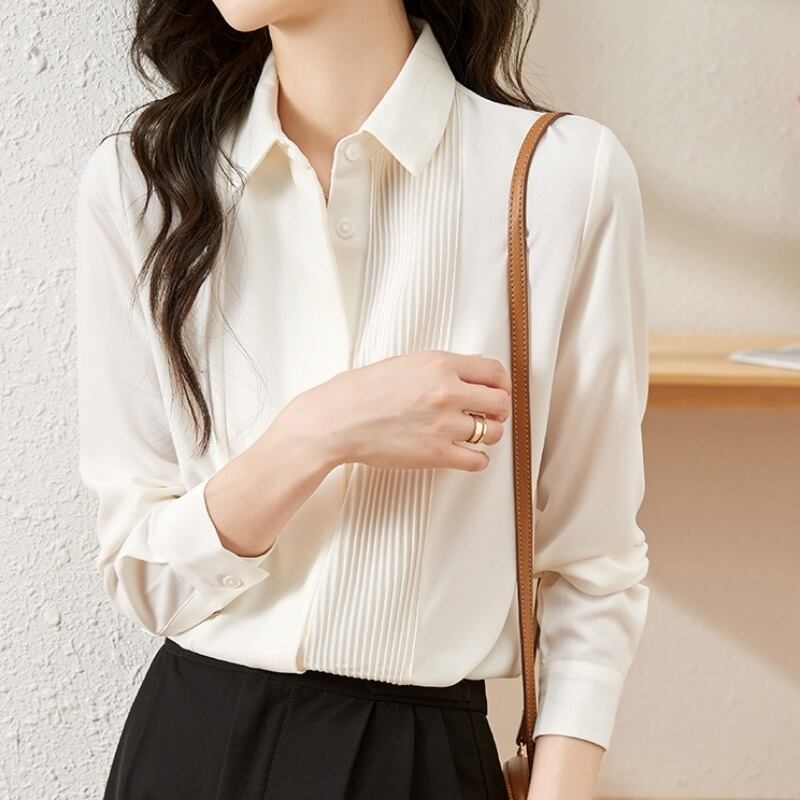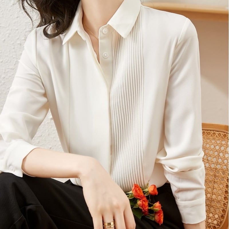 きちんと感がありながらも、柔らかなシルエットが女性らしさを演出します。