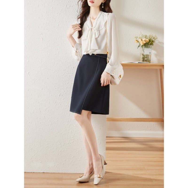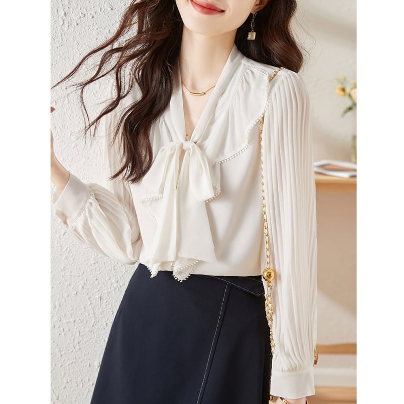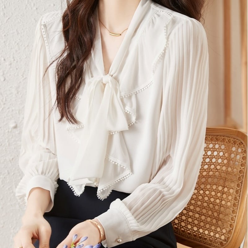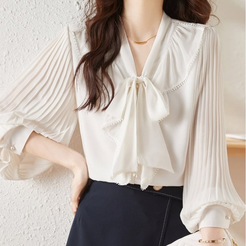 ボウタイプリーツスリーブブラウス Me0854