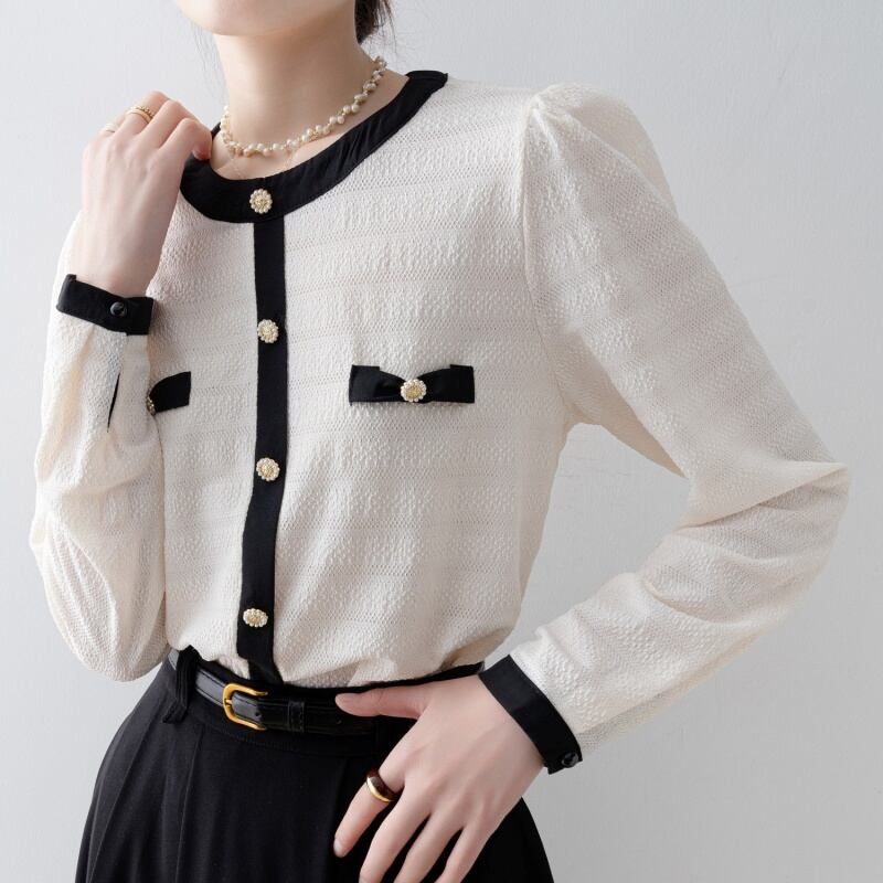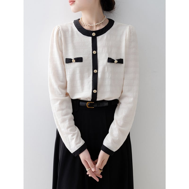 さりげなく施されたブラックのパイピングが、デザインのアクセントになっています。