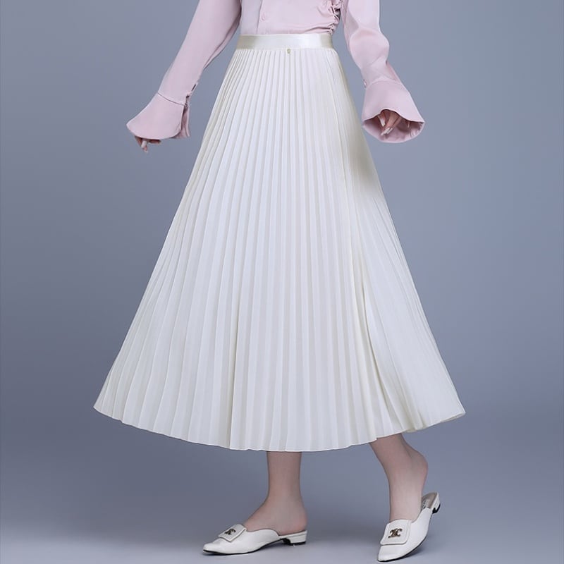 歩くたびに揺れるプリーツが、さりげない上品さをプラスします。